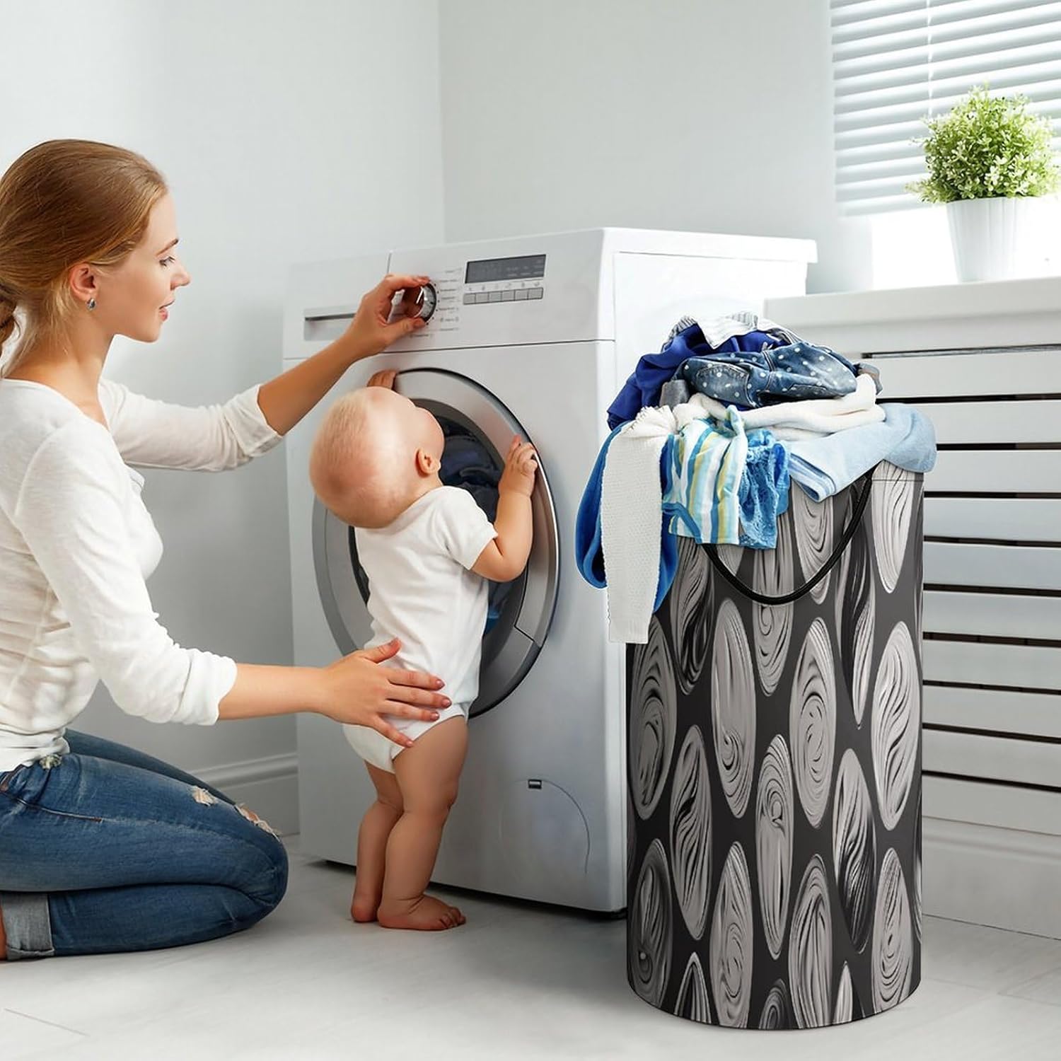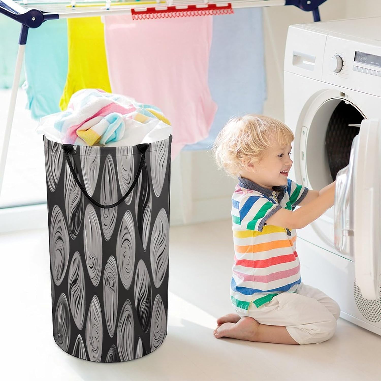 Tired of messy piles of dirty clothes cluttering your bedroom, bathroom, or laundry room? Meet your new organizational essential: the Large Collapsible Laundry Hamper, designed to blend functionality, and style seamlessly into your daily life. Whether you're a busy parent, or a frequent traveler, this versatile hamper Dirty clothes hamper clothes hampers for laundry Large Tall Clothes Basket Bin Decor Storage of Dirty Clothes is crafted to simplify your routine and elevate your space.With its generous size, this hamper easily handles a week's worth of laundry for individuals or small families, eliminating the hassle of multiple trips to the washing machine. From bulky sweaters and bed linens to towels and clothes, Removable Laundry Bags Laundry Hamper Bag Large Laundry Basket effortlessly accommodates all types of fabrics. Say goodbye to overflowing baskets and hello to a tidier, more organized home.More than just a Foldable Washing Bin Collapsible Laundry Bag Abstract Black Silver laundry basket, this hamper adds a touch of modern elegance to any room. Its neutral, minimalist design complements bedrooms, bathrooms, closets, RVs, campers dorms. Use Waterproof Washing Bin Decorative Tall Hamper Large Storage Basket to store blankets, or seasonal items, its versatility knows no bounds.