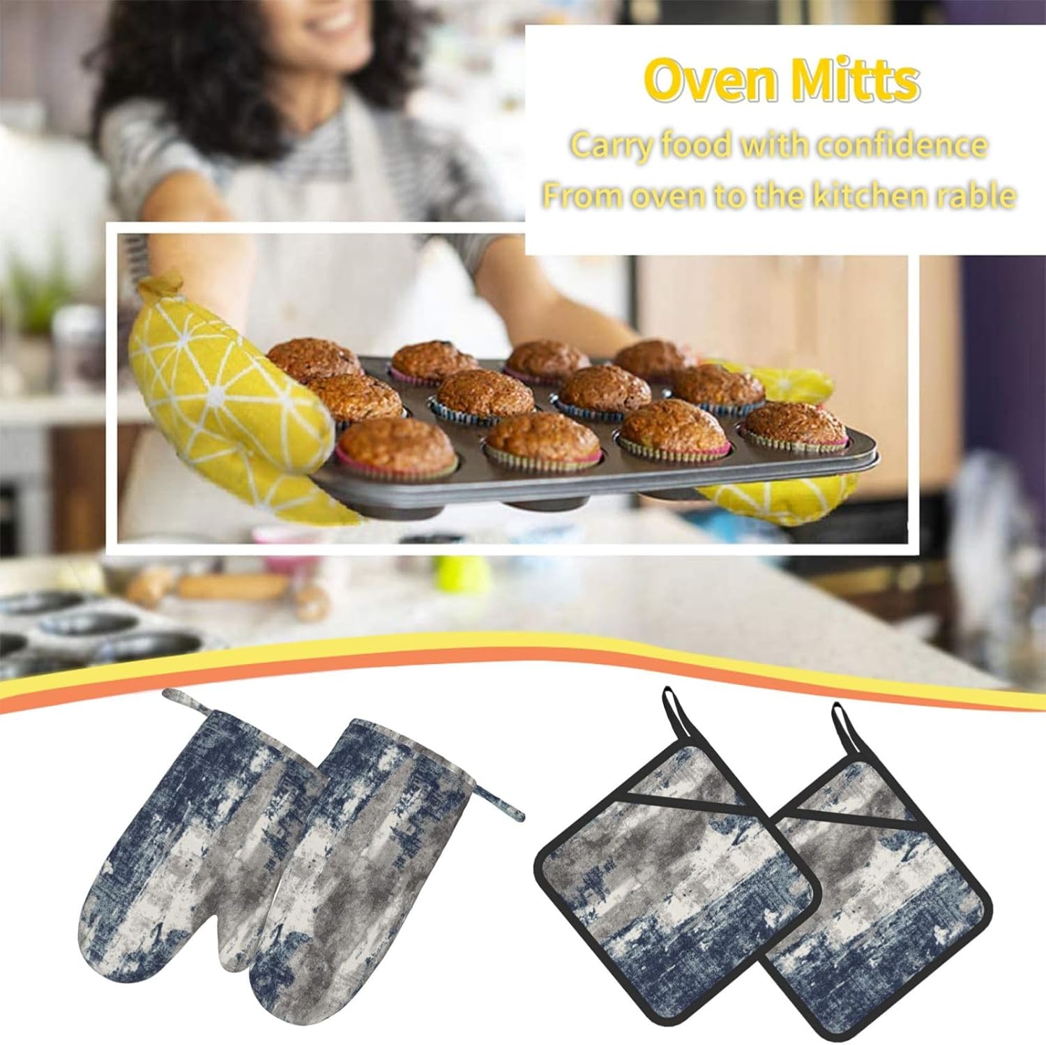 Upgrade your kitchen essentials with this oven mitts and pot holders set, designed for safe and comfortable handling of hot cookware. The set includes 2 heat-resistant oven mitts and 2 pot holders with pockets, making it a practical choice for daily cooking, baking, grilling, and microwave use.Crafted from high-quality polyester with thick insulated padding, these kitchen gloves deliver reliable heat protection up to 260°C. The soft quilted lining ensures comfort and flexibility, while the silicone palm design enhances grip and control when handling hot pots, pans, and trays.The non-slip silicone surface provides added stability, giving you confidence when moving hot cookware. Waterproof inner and outer layers make cleaning simple—just wipe clean or hand wash and air dry for easy care.Each piece features a convenient hanging loop for organized storage and quick access in your kitchen. Stylish and functional, this oven mitts set also makes a thoughtful gift for family and friends on holidays, housewarmings, and special occasions.