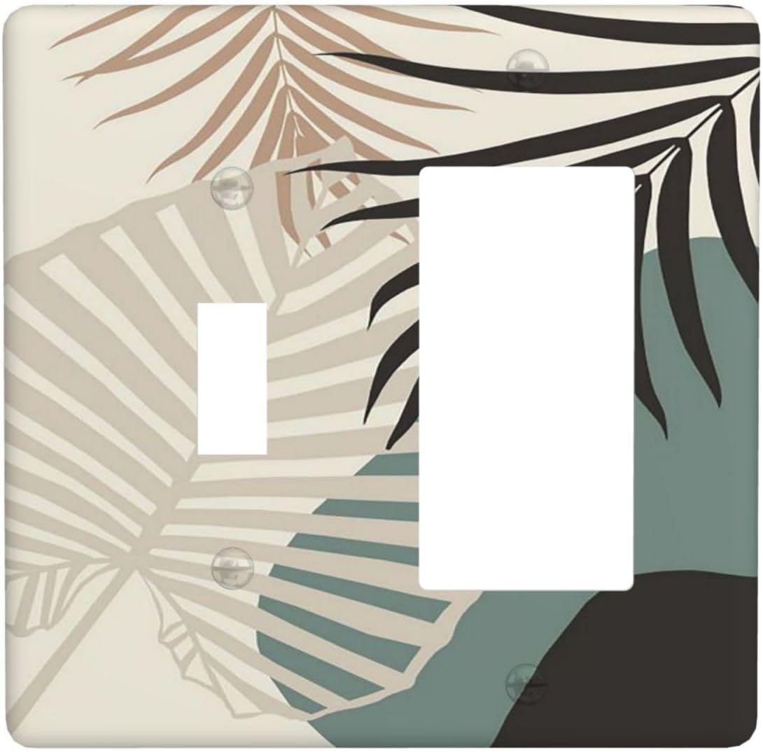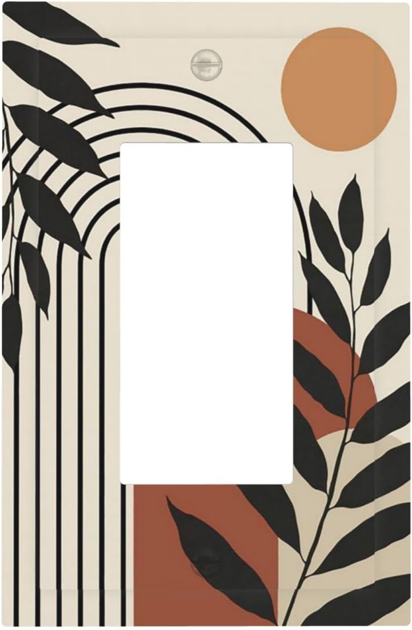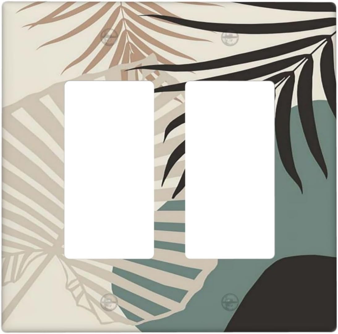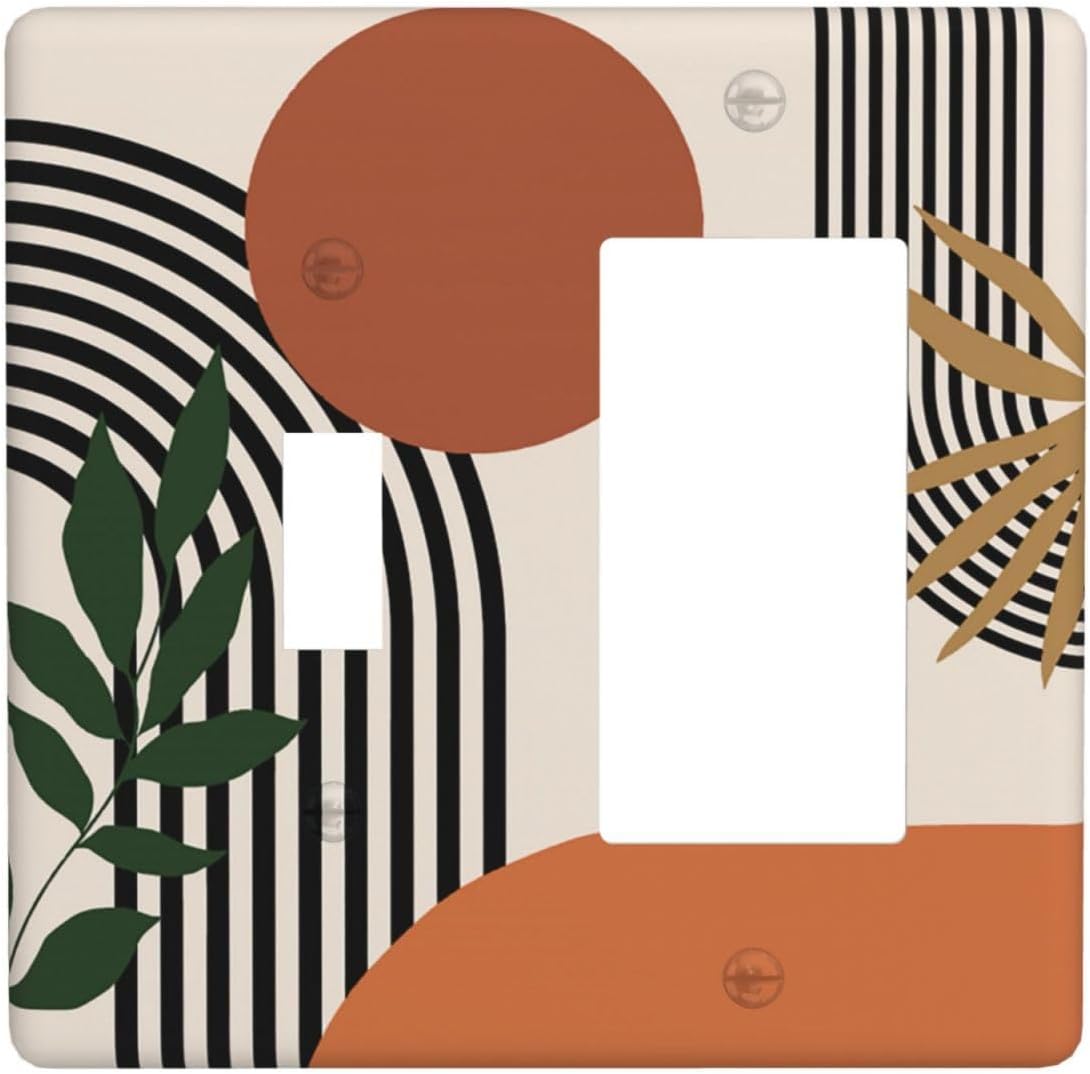 Abstract Boho Mid Century 2 Gang Light Switch Cover Decorative Double Rocker Wall Plate Switchplate Electrical GFCI Faceplate for Wall Panel Decor