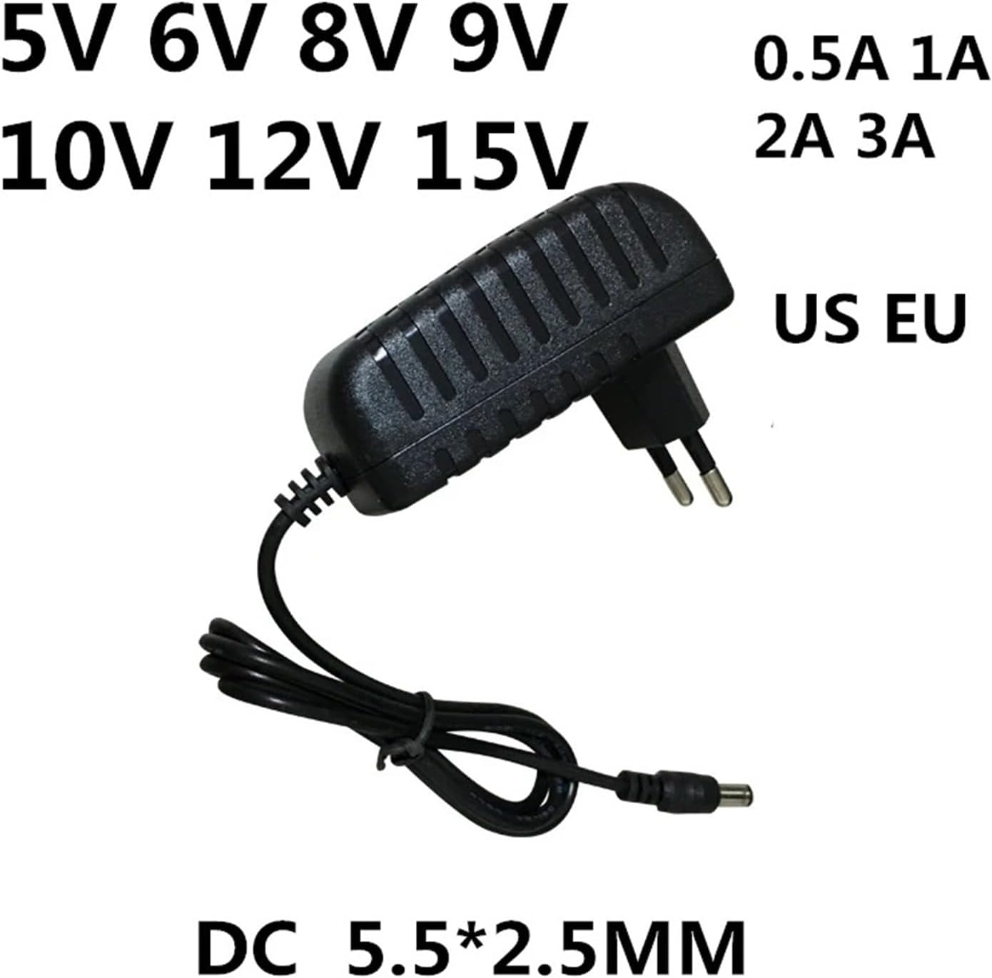 Chargers & AdaptersInput voltage (INPUT): 100-240V 50-60HzOutput voltage (output): DC 5V, 6V, 8V, 9V, 10V, 12V, 15V - 0.5A, 1A, 2A, 3APower (maximum output power): 5W, 6W, 8W, 9W, 10W, 12W, 15WShape: Length 1 meterDC : 5.5mm*2.1mm-2.5mmColor: BlackPolarity: internal is positive, external is negative