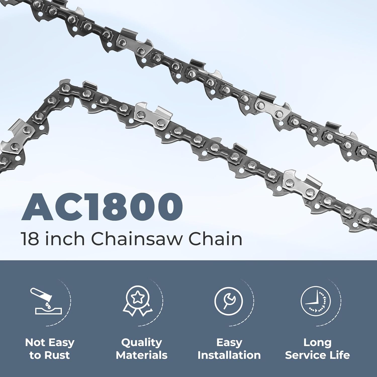 • 【Premium Quality】AC1800 chainsaw blades are made of high-quality steel,and each saw chain has a protective oil on the surface to resist wear,improve strength,reduce chain tension changes,and make the machine run more smoothly.