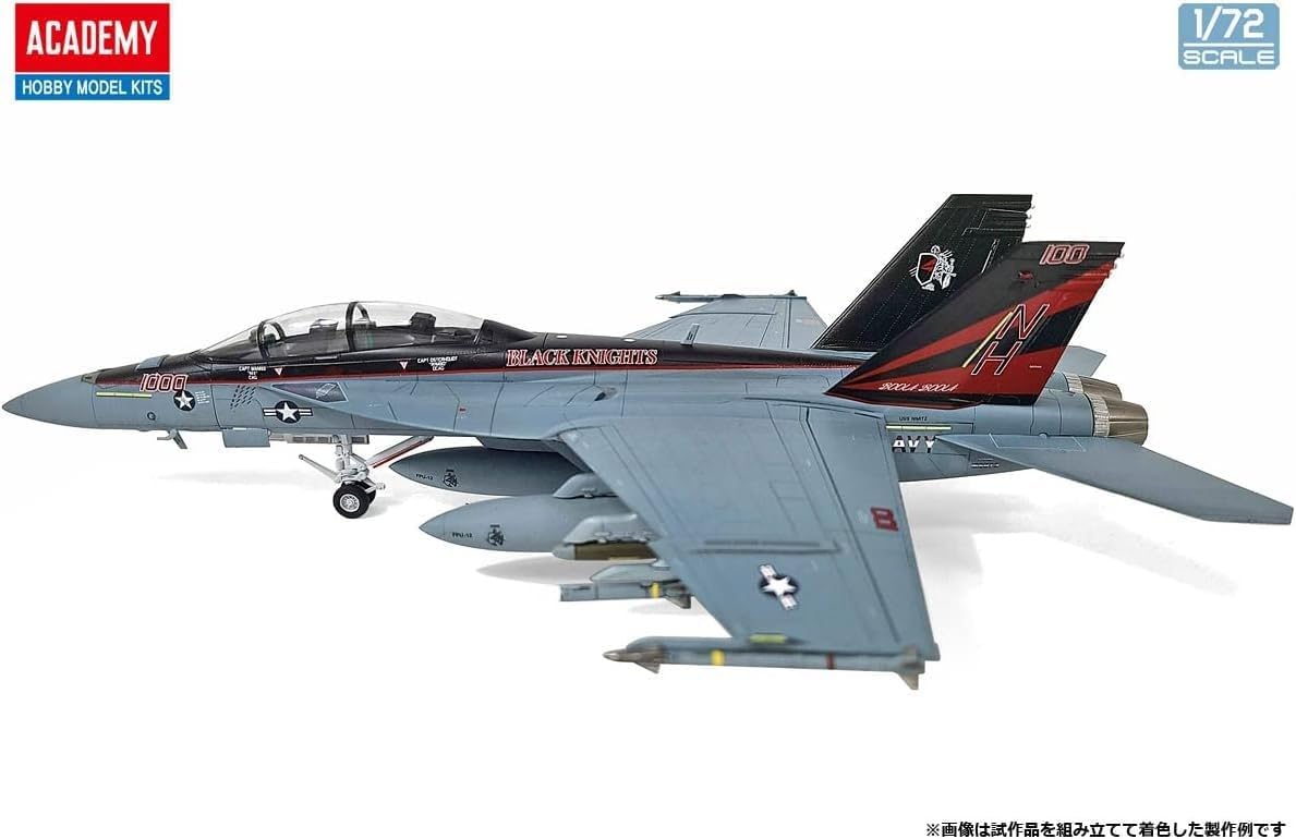 Academy 1/72 US Navy F/A-18F VFA-154 Black Knights Plastic Model Introducing the American Navy Combat Attack Squadron VFA-154 Black Knights Affiliation aircraft F/A-18F Super Hornet. The product has a moderately reduced number of parts, and the form of various weapons and aircraft are reproduced using precise molds. Comes with 2 decals (Caltograph) including Aviation Commander (CAG) and a Canopy Masking Seal. Size when assembled: Total length 10.0 inches (255 mm), Total height 7.4 inches (18This is a plastic model that requires assembly and painting. Assembly and painting requires glues, tools, and paints, sold separately. "Plastic Model" is a registered trademark owned by the Japan Plastic Model Industrial Cooperative Association. This product does not include any glue, paint, tools, batteries, etc.