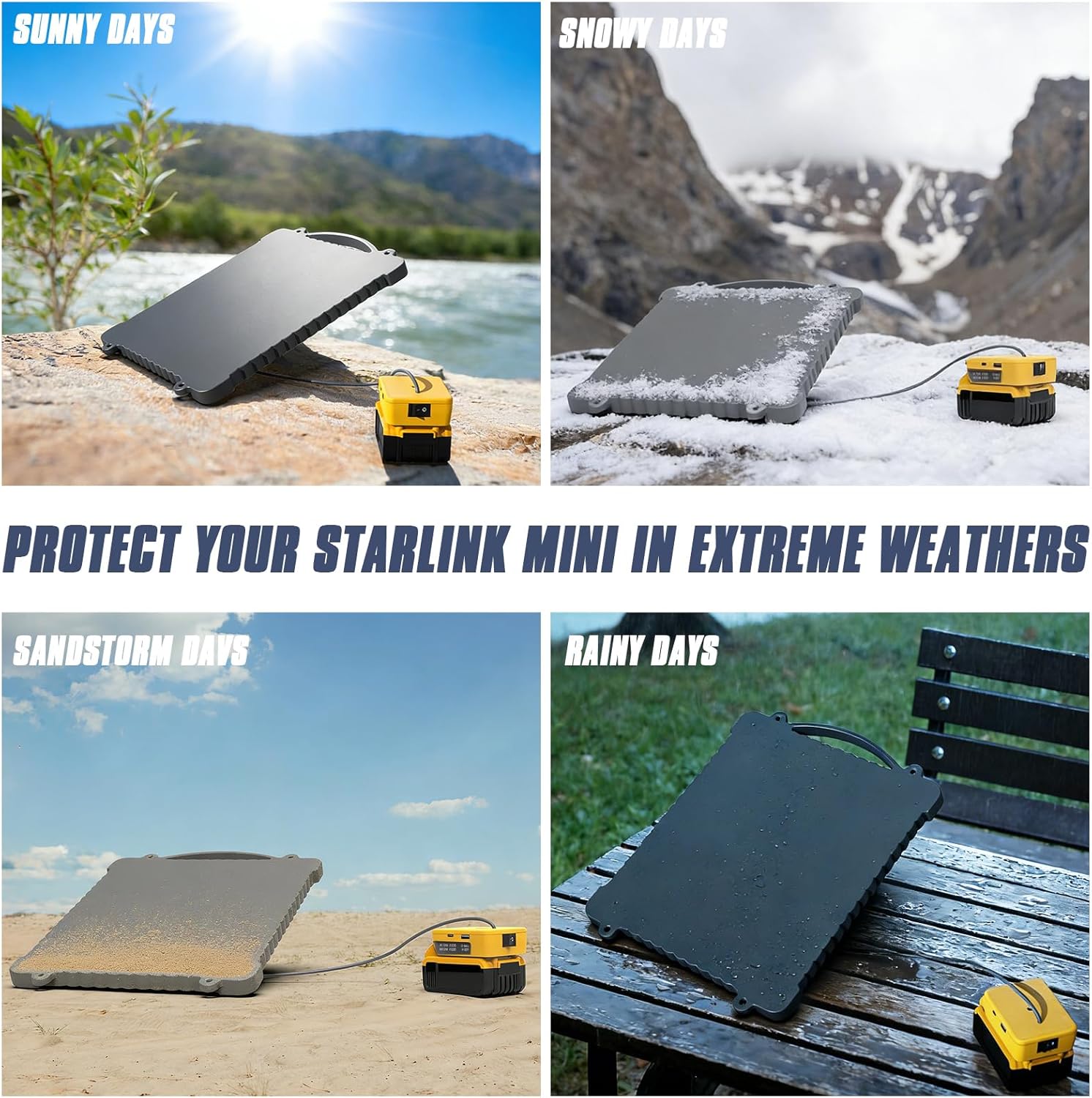 Shield your Starlink Mini from drops, rain, and dust with a weatherproof silicone cover & Battery Adapter (easy to clean, signal-friendly!). Compatible with DeWalt 18V-20V batteries for instant off-grid power—plus charge phones/tablets via dual USB-C ports. Plug-and-play, lightweight, and built tough for camping, RVs, or hiking. Everything you need in one kit: case, battery adapter, cables, carabiners, and storage pouch. No tools required.