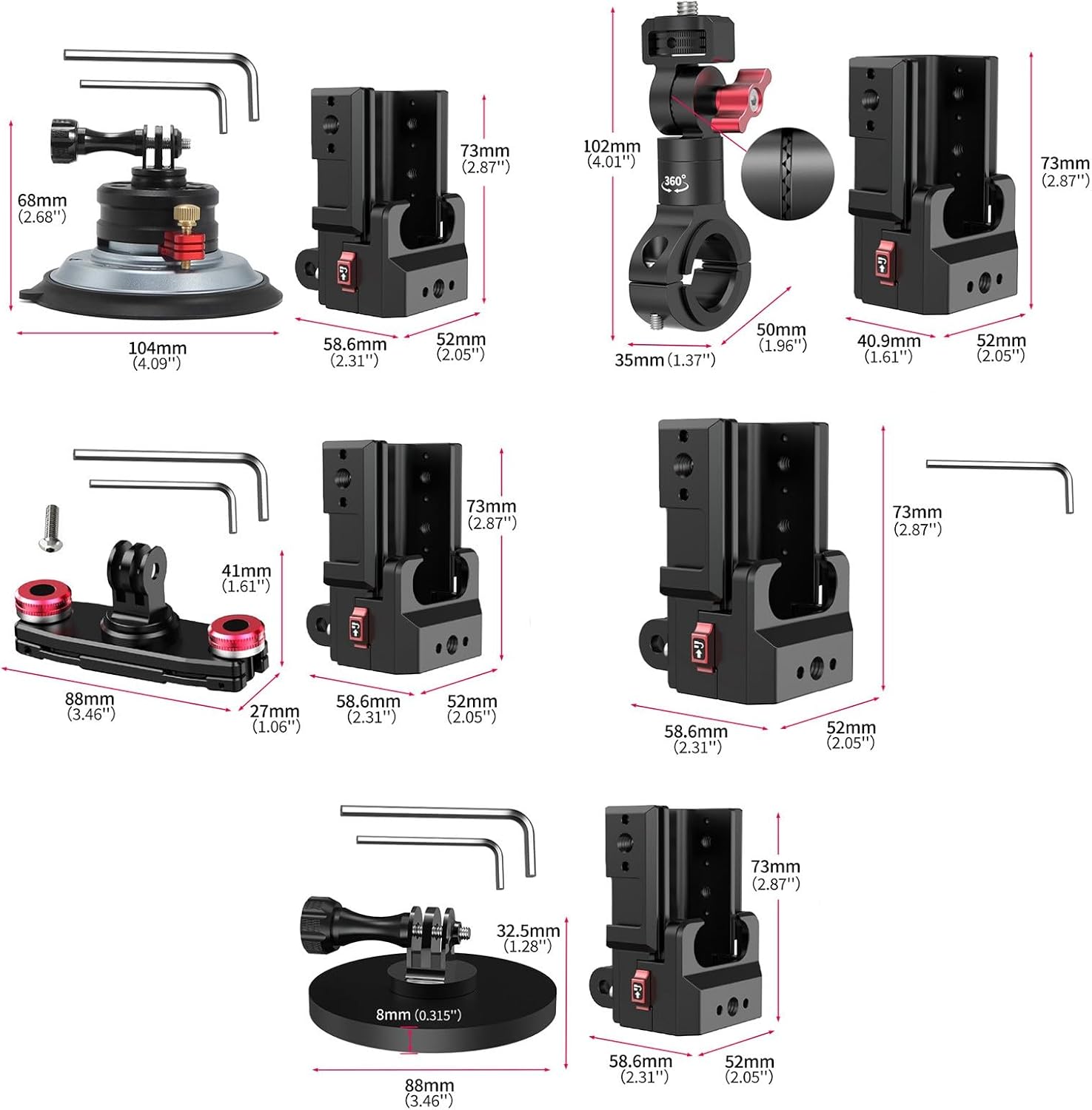 • Features 360 degree damping rotation, 180° adjustable viewing and removable rubber spacers (22.5-32mm) for versatile camera positioning without requiring extra cages