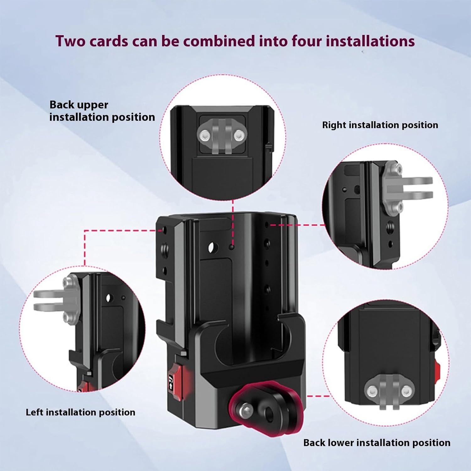 Action Camera Bike Mount 360 Damping Rotations Aluminum Construction for Multiple Handlebar Size 22.5-32mmFeatures:Premium aluminum construction ensures stability for during bumpy rides, solving bracket fragility issues with durability bike mount design.Features 360 degree damping rotation, 180° adjustable viewing and removable rubber spacers (22.5-32mm) for versatile camera positioning without requiring extra cages.Ideal for adventure cyclists and vloggers needing reliabled easy during long distance journeys or rough terrain exploration.Perfectly secures your action camera on handlebars during mountain trail city commutes, or road trips while maintaining smooth footage quick release with single knob operating enables instantly attachment/detachment, while silicone wrapped base prevents scratches on bike surfaces.Specifications:Component: High-strength aluminum For Size about: cage 73x52x58.6mm/2.87x2.05x2.31inOptional Version: Two card 1/4 positioning model / front and rear adjustable strong suction cup model / 360-degree damping rotary bike clip model / shoulder strap clip model / suction cup modelPracticality: Suitable for cycling video taking for sports cameras, it can be firmly fixed on the bike, ensuring a smooth effect can also be achieved on bumpy roads.Package Includes:1PC expansion frame 1PC L-shaped wrenchNote:Please allow 1-2cm errors due to manual measurement. Please allow for slight color differences due to different display resolution.
