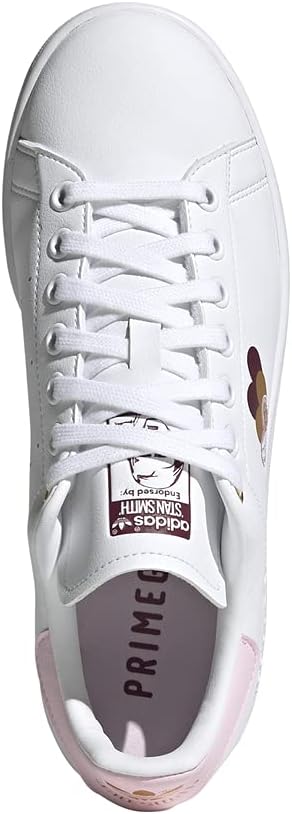 These women's adidas Stan Smith sneakers take their inspiration from the iconic tennis shoes of the '70s. Glamorous metallic and embroidered hearts add a joyful flair to the synthetic leather upper.