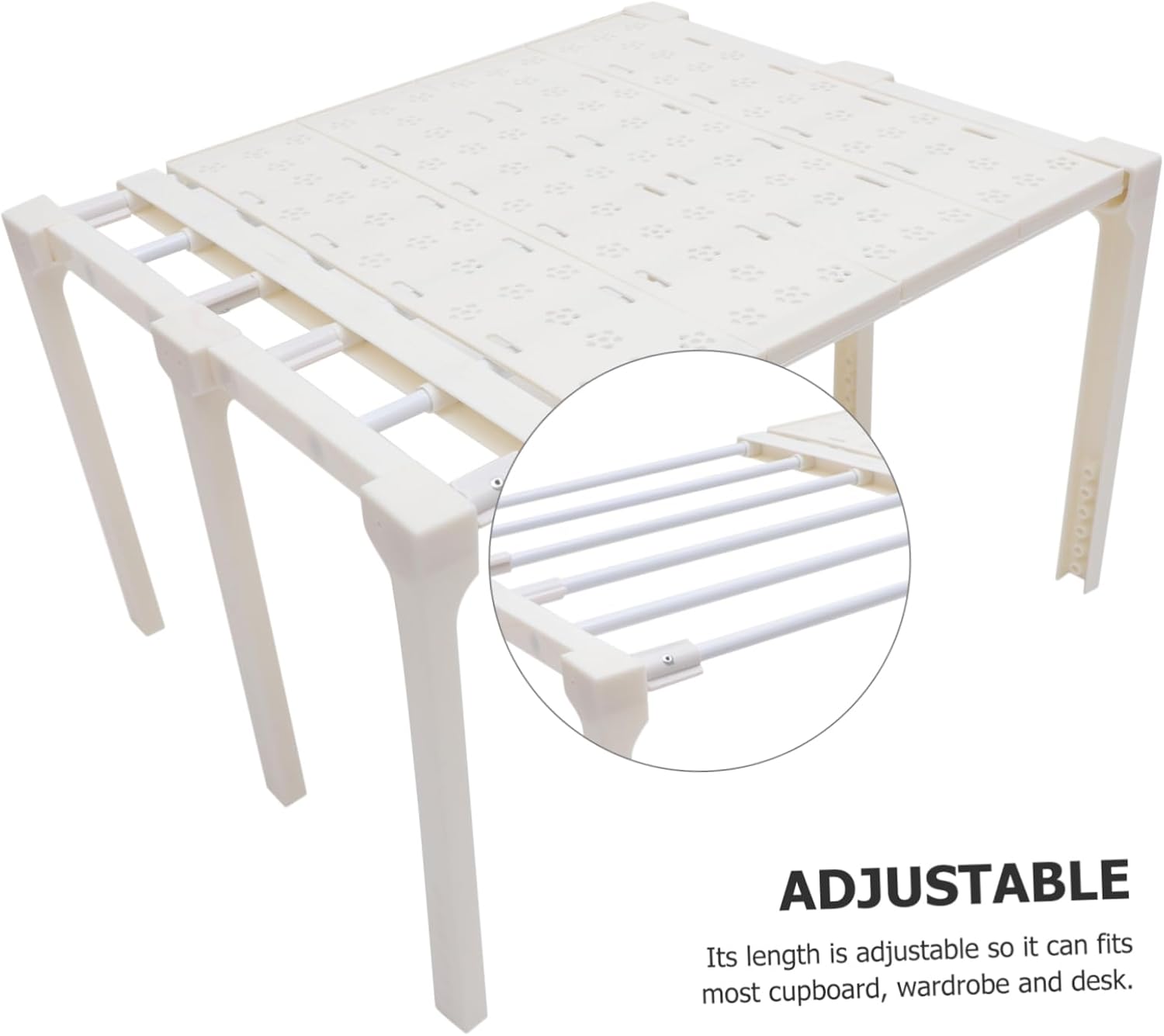 Package List 1 x Closet Shelf Features -Material:ABS, carbon steel detachable closet shelf - Size: 80.00X41.80X30.00cm/31.44X16.43X11.79in telescopic extension shelf -The grain on the surface of the partition board is clear and regular, which can the anti-skid performance and objects stably without worrying about falling off storage rack for closet. -Nail-free installation, no need to punch, no to the cabinet, no installation traces, can be reused wear-resistant closet shelf. -Easy to organize and store, suitable for bookcase, shoe cabinet, bookcase, cabinet, bathroom and so on closet organizer. -Help you to layout the room reasonably, fits all most furniture that uses to store daily articles shelving unit for closet. - ColorWhite shelving unit -Retractable, easy to fix and remove, very convenient for you to operate household closet shelf.Goods Informationstorage shelving You can use this dividing board to separate your goods, for you to sort and store different items.household closet rack This item is retractable layered partition, which is made of sturdy ABS and carbon steel, not easily broken.cabinet telescopic rack The adjustable wardrobe shelf your home look clean and neat