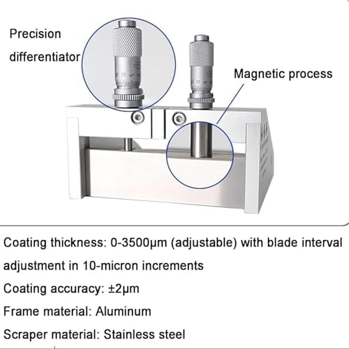 Introducing our Adjustable Film Applicator, designed for precision and versatility in film coating applications. This innovative machine allows operators to effortlessly set the blade gap using a micrometer, ensuring optimal film thickness for a variety of projects. With adjustable blade widths, you can easily customize the film width to suit your specific needs, making it ideal for producing high-quality ceramic cast films, battery electrodes, and an array of coatings. Crafted from durable aluminum alloy and stainless steel, our film applicator not only promises longevity but also delivers exceptional performance. It features a film thickness range of 0-3500μm, adjustable in precise increments of 10 microns, ensuring you achieve the exact specifications for your coating requirements. With an accuracy of ±2μm, this applicator is perfect for both professional and research environments where precision is paramount. Our film applicator is available in multiple widths—50mm, 55mm, 100mm, 150mm, 200mm, 250mm, and 300mm—allowing you to tackle a wide range of applications, from small-scale experiments to large production runs. Whether you are in a laboratory setting or a manufacturing facility, this machine enhances your workflow and elevates the quality of your output. Unlock the potential of your projects with our Adjustable Film Applicator, where precision meets practicality. Elevate your production capabilities and ensure consistent results every time. Perfect for engineers, researchers, and manufacturers looking for reliable coating solutions. Experience the difference in your film coating applications today!