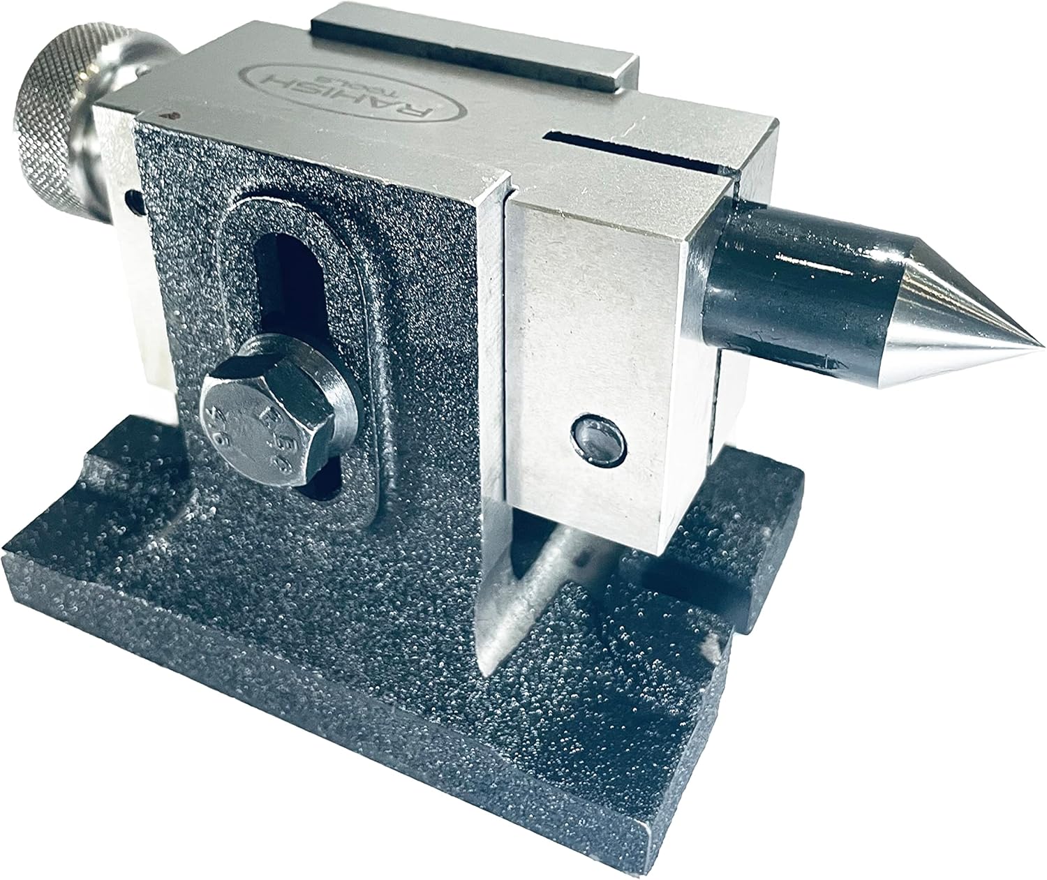 "1. Small Lathe Tailstock suitable for 3"" (80 mm) & 4"" (100 mm) Regular and Tilting Model of our Rotary Tables. 2. Very Robust quality tailstock in Caste Iron, the moving dead centre in EN31- hardened & ground 3. The Center Height is so that it suits center height of all 4 different types of 3""/ 80 and 4""/ 100 mm HV and Tilting models of the Rotary tables , simply by reversing the body of it in upside down position."