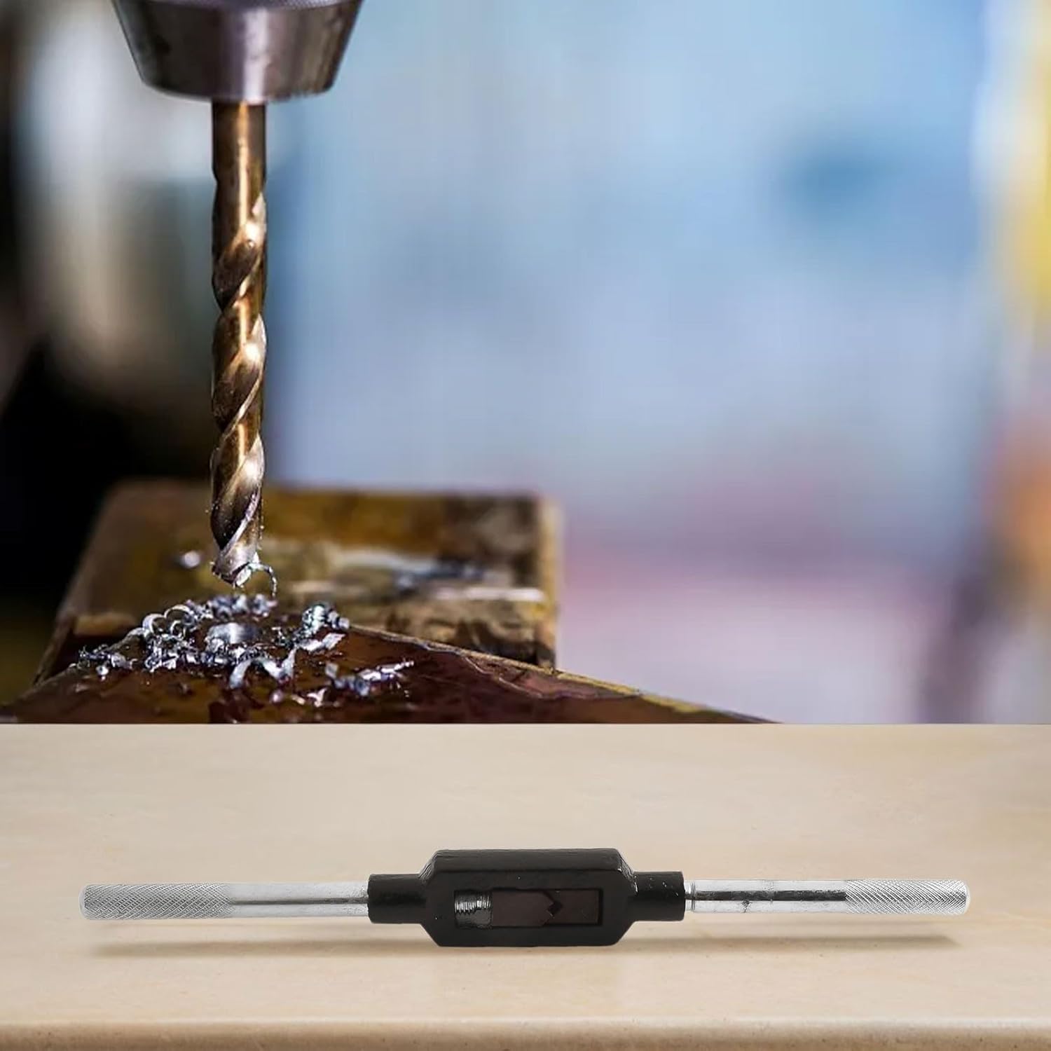 Product description Features:*Ergonomic Handles: Designed with knurled grips, the adjustable tap wrench ensures a comfortable and secure hold, making it easy to maneuver during use, even in tight spaces. *Easy Adjustability: The clamping jaws can be effortlessly adjusted by hand, allowing for quick and reliable securing of taps, streamlining your workflow and enhancing efficiency. *Lightweight Yet Sturdy: Constructed from die-cast zinc, this tool holder combines strength and lightness, providing a solution without adding unnecessary weight to your toolkit. *Versatile Compatibility: Capable of accommodating taps ranging from 4mm to 12mm, this wrench is suitable for various threading tasks, making it meets diverse project needs with ease. *Efficient Tool Removal: The handles can be easily detached by simply turning, allowing for quick adjustments or storage without hassle, making it a practical addition to any workshop. Specifications:Product name: Adjustable Tap WrenchMaterial: Zinc AlloyColor: SilverSize: NoType: 4mm-12mmSuitable for: Tap wrenchPackage Content:1 x Adjustable Tap Wrench Manufacturer Contact Information no