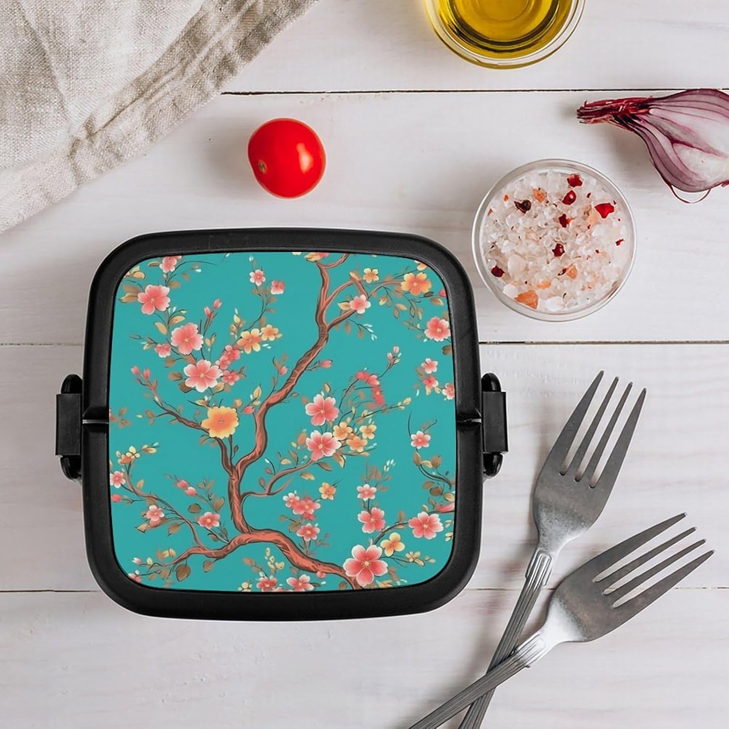 This box adult Bento Box is a must - have for those who are always on the go. Made from high - quality PP material, it's not only sturdy but also safe for storing foodThe double - layer design:lunch box large for women The tight - fitting seal ensures that no food leaks out, whether it's a juicy salad or a soupy dish. Plus, it keeps the food's smell inside, so you don't have to worry about any unpleasant odors in your bagThe clever divider design is another highlight:Turquoise Blue Flower cooler lunch box It allows you to neatly separate different types of food. You can put your fresh vegetables in one section, fruits in another, and some snacks in the third. This way, each food item retains its original taste, giving you a wonderful dining experienceCarrying this bento box is a breeze:modern bento The snap - lock mechanism makes it easy to open and close, and the attached handle means you can carry it around effortlessly. Whether you're going to work, on a camping trip, or just out for a day of fun, this bento box is your perfect companionadult bento:Suitable for traveling, taking meals to work, taking fruits, camping and traveling, very light and portable. Washable and reusable. [Special Instructions] Note: This product cannot be put into the microwave