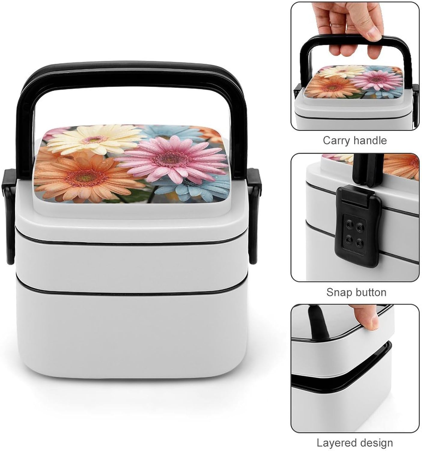 This box adult Bento Box is a must - have for those who are always on the go. Made from high - quality PP material, it's not only sturdy but also safe for storing foodThe double - layer design:lunch box large for women The tight - fitting seal ensures that no food leaks out, whether it's a juicy salad or a soupy dish. Plus, it keeps the food's smell inside, so you don't have to worry about any unpleasant odors in your bagThe clever divider design is another highlight:Colorful Daisy Flower cooler lunch box It allows you to neatly separate different types of food. You can put your fresh vegetables in one section, fruits in another, and some snacks in the third. This way, each food item retains its original taste, giving you a wonderful dining experienceCarrying this bento box is a breeze:modern bento The snap - lock mechanism makes it easy to open and close, and the attached handle means you can carry it around effortlessly. Whether you're going to work, on a camping trip, or just out for a day of fun, this bento box is your perfect companionadult bento:Suitable for traveling, taking meals to work, taking fruits, camping and traveling, very light and portable. Washable and reusable. [Special Instructions] Note: This product cannot be put into the microwave