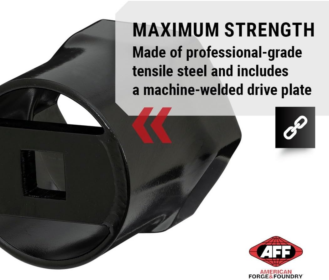 Professional grade axle nut sockets that remove and install truck wheel bearing locknuts with speed and ease. Precision engineered for an exact fit and smooth operation. Tight tolerances grip axle nuts firmly and resist rounding out. Constructed with high-grade steel and includes a machine welded drive plate for maximum strength. Powder coat finish provided added rust and corrosion resistance. Laser etching provides easy identification of socket size.