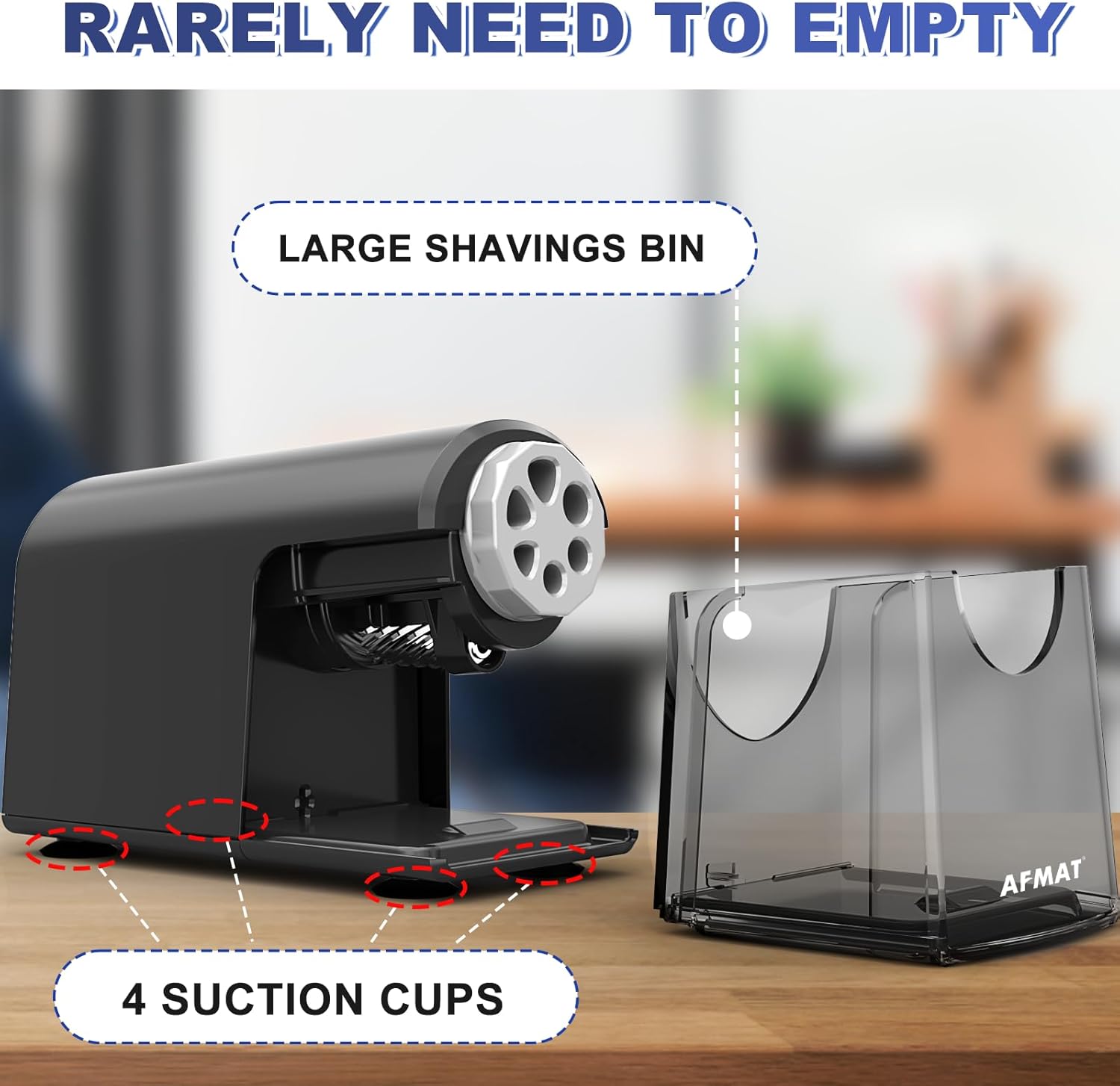 | Additional Features | ①Auto Stop ②For 6-11mm Pencils ③Sharpen Fast ④Save Pencils ⑤Large Shavings Box ⑥Suction Cups |