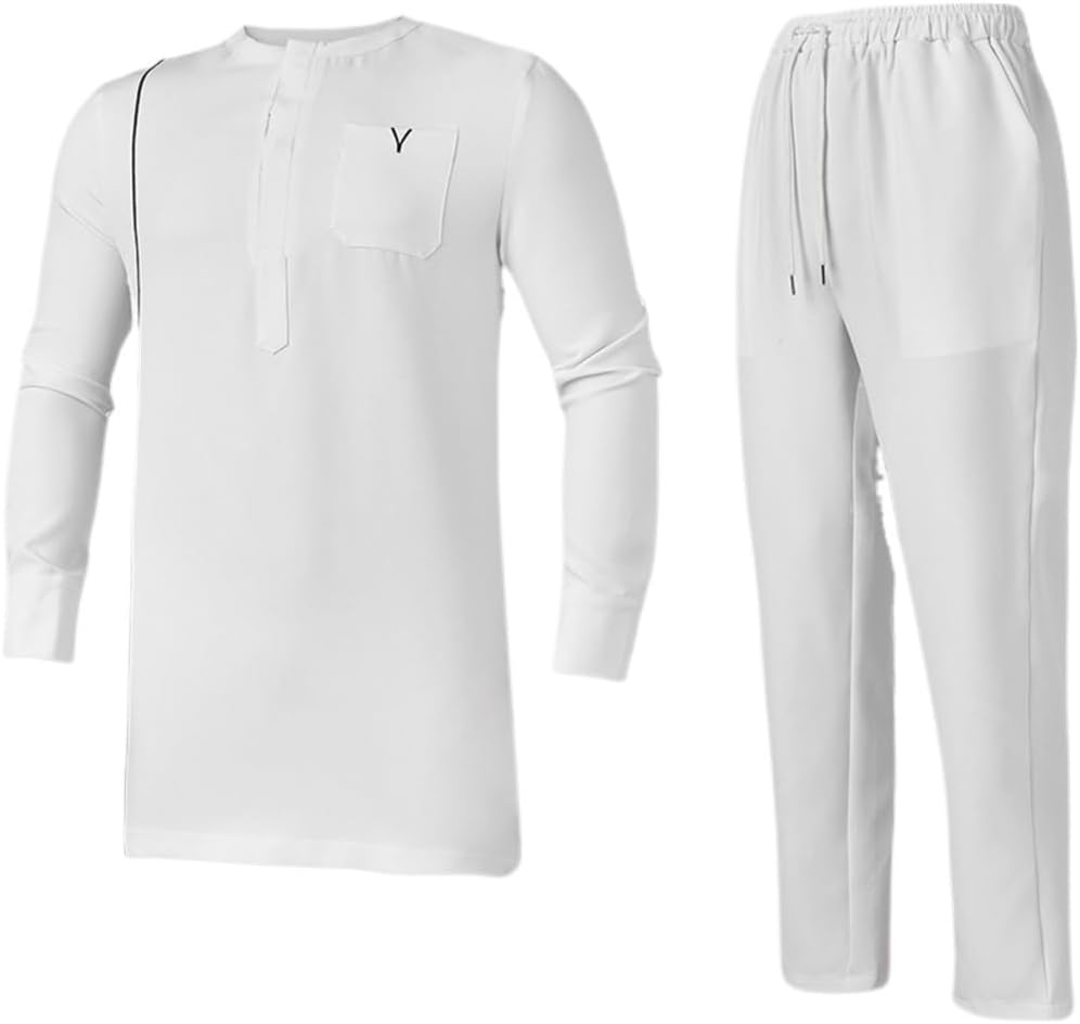 African Traditional 2 Piece Dashiki Suits for Men Outfits1.High quality 95% polyester+5% spandex. Pleasantly Cool/ Breathable / Lightweight /Good Hygroscopicity.2.Simple and classic style, never go out of date.3.It is polite to wear it in formal occasions and can be applied in daily life.4.Machine Wash Cold Inside Out /Do not bleach!SpecificationName: Men African SuitsFabric: 95% polyester+5% spandexSize: XS, S, M, L, XL, XXLStyle: Ethnic styleEdition type: Slim typePant length: Long pantSuitable for the season: four seasonsPackage Included1 * Men's shirts1 * Men's PantNotes1. There will be a small error range due to manual measurement, but it's within an acceptance.2. The color may be slight different from what it appears on site due to different monitor setting. Please notice that is not a quality problem.