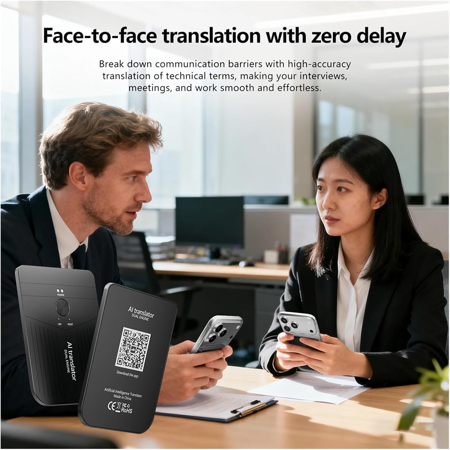 AI Magnetic Translator, Rechargeable Ultra-Thin Instant Language Translator, Real-Time Simultaneous Interpretation Device for Office Business TraveFeatures:1.Compact and Portable Design: The A18 features a sleek, ultra-thin 3.5mm body that adheres discreetly to your phone, making it the good on-the-go companion. Enjoy effortless communication using the magnetic translator for both travel and business settings.2.Long-Lasting Battery: Engineered with a 170mAh high-capacity cell, this device supports rapid 30-minute charging and offers up to 3 months of standby power. Experience convenience and reliability from your portable intelligent translators, eliminating low-battery worries.3.Versatile Functionality: Seamlessly transcribe speech to text, record meeting notes, and translate photographs in real time. This multilingual electronic dictionary enables automatic paragraphing and highlights key content to simplify your workflow.4.Supports 138 Languages: Communicate easily with users from around the world. The ultra-thin real-time translator delivers accurate, AI-powered results, translating 158 languages in just 0.5 seconds with up to 98% accuracy.5.Premium Materials: Built from aerospace-grade all-metal aluminum alloy with CNC-processed details, this simultaneous interpretation tool combines and durability, elevating your translation experience.Dear Customers, welcome to our store.We truly appreciate you selecting our products and services. Our team has always been dedicated to delivering items that align with their listed descriptions, along with attentive customer support. You can conveniently pick out the perfect products based on your specific needs and preferences.Should you have any questions while browsing our listings or completing your order, please don’t hesitate to reach out to us through the Amazon Buyer-Seller Messaging Service. We will respond to your inquiries with clear answers as promptly as possible.Thank you once again for your trust in our store. We hope you enjoy a smooth and satisfying shopping experience with us!