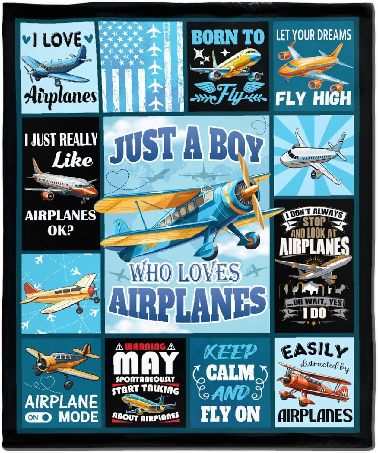 Comfortable fabrics: This Just A Boy Who Loves Airplanes Blanket Both Sides Are Made Of Flannel, Very Soft And Gives You A Silky Experience. Whether It Is Covered On The Body Or Sofa, It Is Very Fluffy And Durable. Lightweight Can Easy To Carry To Bring You Warmth Anytime, Anywhere.Multi-Puppose: When You Are Drinking Coffee Or Watching TV In The Living Room, Camping Outdoors With Your Friends, This Blanket Can Not Only Be Used To Keep You Out Of Cold, The Beautiful Patterns Also Can Be Used To Decorate And Protect Furniture And Walls, All Year Round.Long lasting:This Extra Warm Blanket Features Two-sided Pile And 1-inch Hem Along With Double Needle Stitching, So It Will Stay With You For Years To Come.Thoughtful Measures: We're Pretty Sure You'll Love This Blanket, And We Are Committed To Your Shopping Experience,so Please Feel Free To Contact Us With Any Questions You May Have.Notes:Due To Different Lighting And Screen Settings, The Product Color May Be Slightly Different From The Picture.