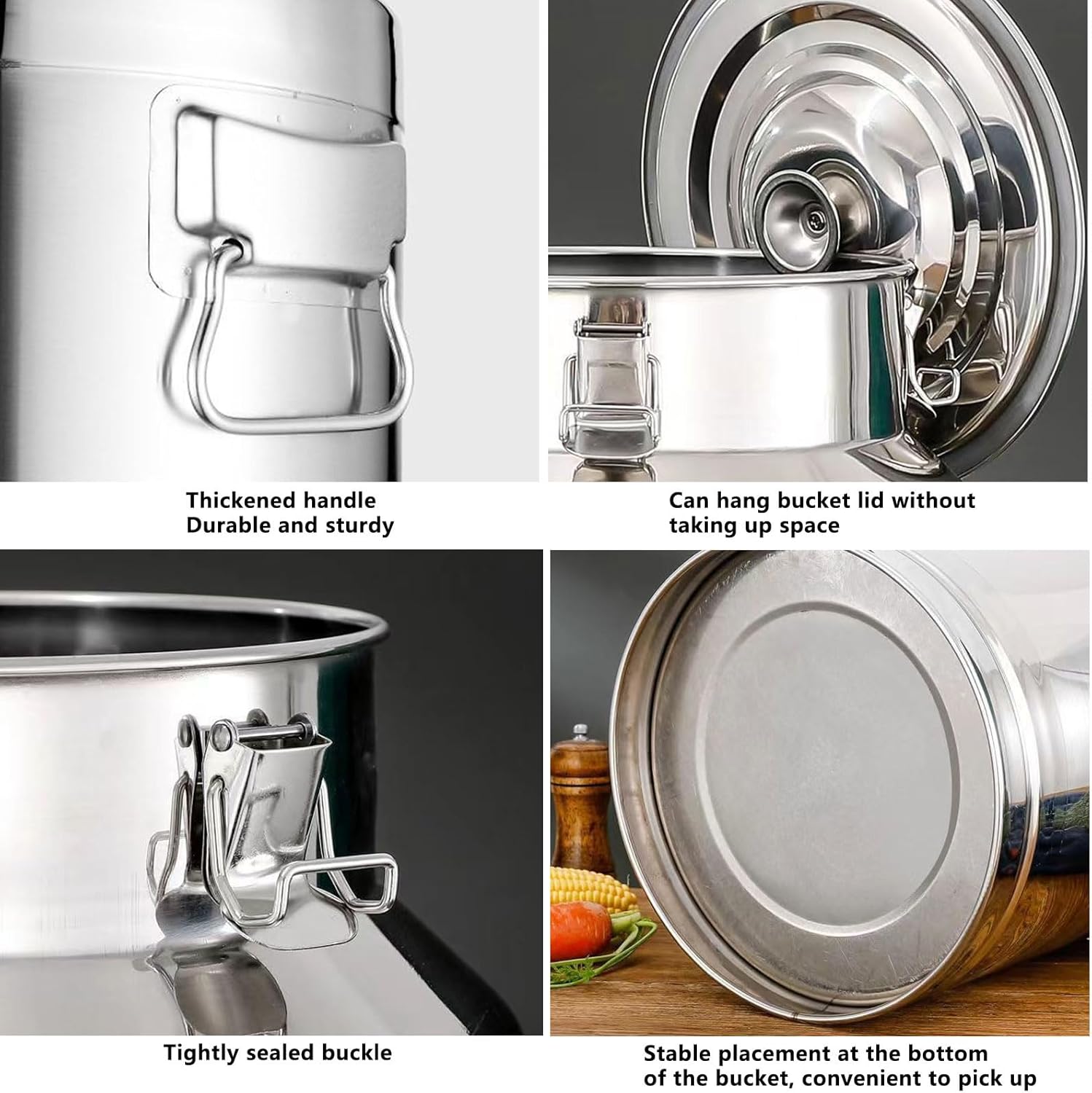 The milk can is made of 304 stainless steel material, which is sturdy and durable, rust-proof and heat-resistant. A simple structure and smooth surface allow for effortless cleaning.Our milk bucket with three clips and silicone seal can provide you with quality and flavor preservation. The lid of the milk jug has a waterproof rubber seal to effectively prevent liquid from spilling, food is less likely to spoil or become tasteless. This wine barrel are suitable for storing various wet and dry foods, such asrice, flour, grain, dried peppers, oil, milk, wine, water, etc.Specification:Size: 35L 30X54cm,42L 30X64cm,58L 35X60cm,64L 40X50cmCan Material: Stainless SteelLid Gasket Material: SiliconeShape: RoundColor: SilverNote: Please allow 1-2cm error for manual measurement. The measurement mark are measured based on water. Different items may have different capacities due to different densities.Please don't mind.Package Content:1 x Milk can