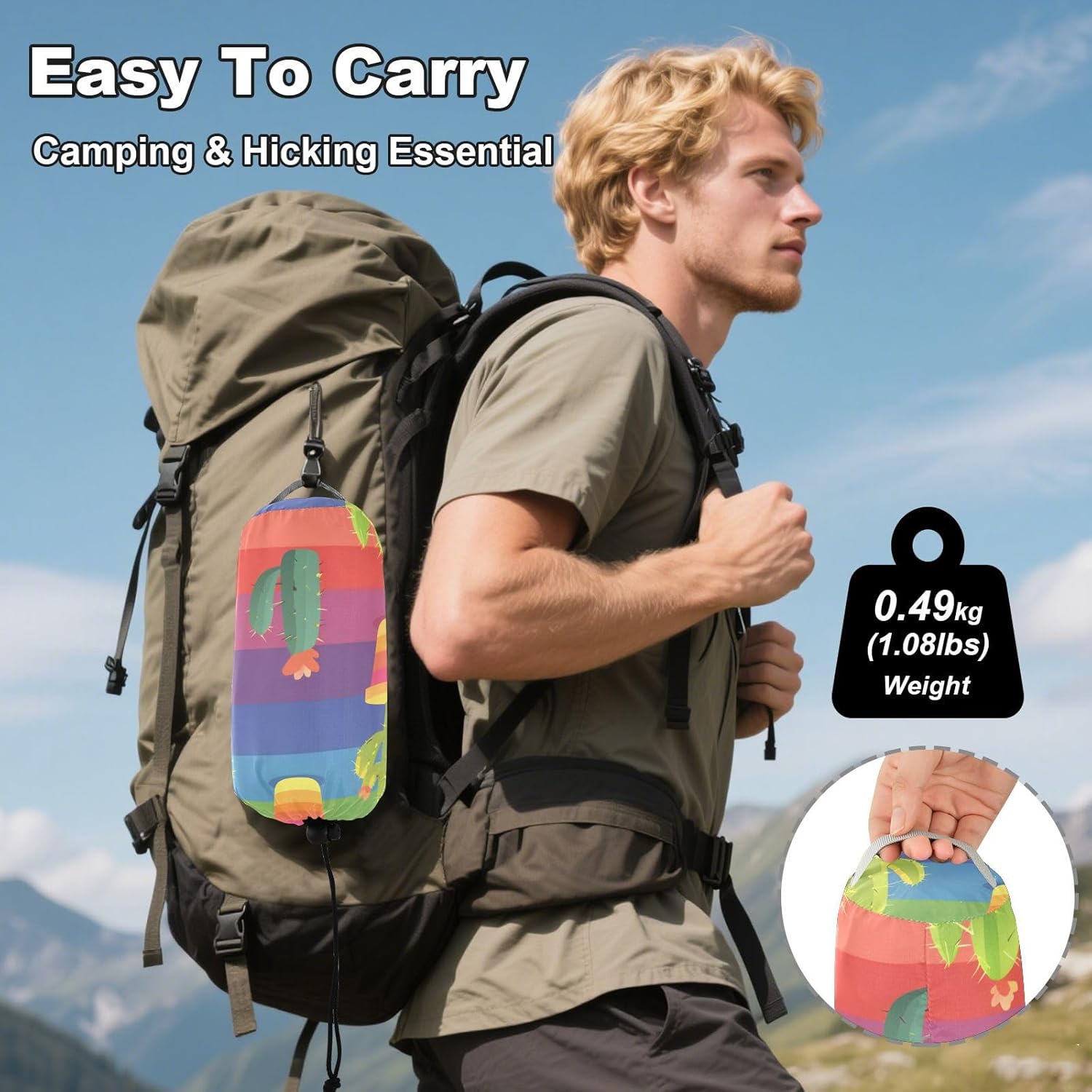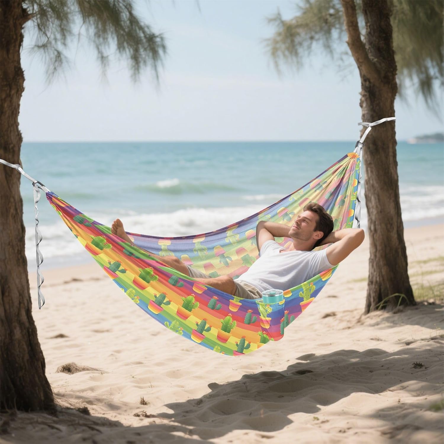 Reliable Outdoor Relaxation This practical hammock delivers comfort and convenience for outdoor enthusiasts using quality materials and thoughtful engineering. Technical Details Material: 100% polyester (210T taffeta body; 600D polyester straps) Hardware: Aluminum carabiners Load Capacity: 500 lbs (227 kg) Packed Size: Approx. 7 x 5 inches (18 x 13 cm) Durable Construction Reinforced triple-stitched seams at stress points Quick-drying material Practical Applications Camping and backpacking Hiking rest breaks Beach and park outings Family relaxation Travel and festivals Package Includes 1. Hammock 2. Straps (2m each) 3. Carabiners 4. Storage sack Designed for Easy Use Sets up in minutes without tools. The balanced design provides stable support, while the breathable fabric prevents overheating during extended use.