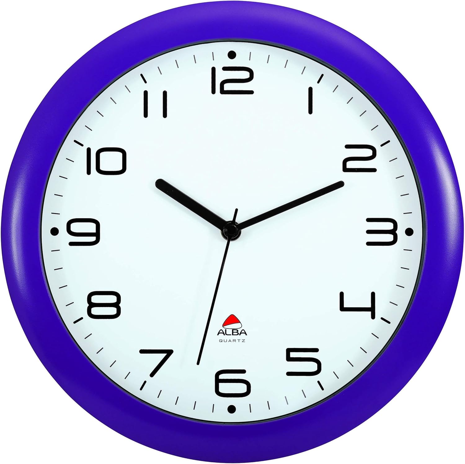 No more annoying ticking sound with this silent clock from Alba. Perfect for any décor, this 12-inch wall clock is ideal for office, classroom or home use. The large black numbers are easy to read from a distance, and the reliable precise silent quartz mechanism keeps perfect time. Easy to hang; operates on one AA battery (not included). Alba makes products that fit your needs with the perfect combination of function, pleasure and comfort.