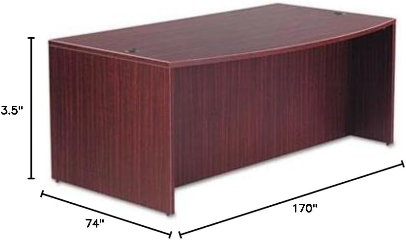 Commercial grade laminate work surface and side panels are water-, scratch- and stain-resistant. Charcoal accent line under worksurface adds a distinctive touch. Arched front with up to 18'' of conference overhang. Protective edge banding helps prevent damage from bumps. Two grommets for cable and wire management. Full-length modesty panel for privacy.