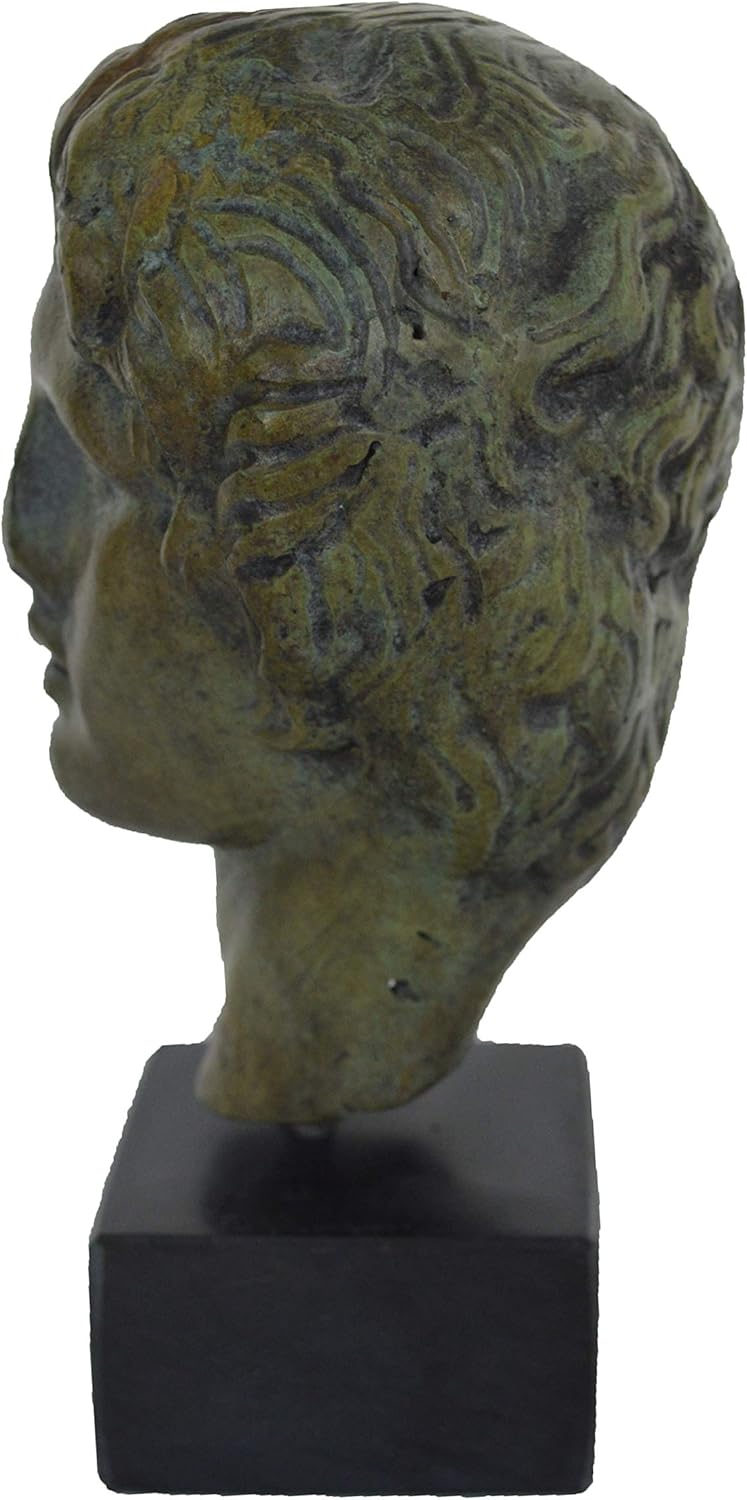 Alexander the Great was born in northern Greece in 356 BC. He was tutored by the philosopher Aristotle. He ascended the Throne in 336BC following the death of his father Phillip II of Macedon. He was known as one of the greatest military leaders of the ancient world, Alexander the Great conquered Asia Minor, Egypt and Persia, founding over 70 cities in the process. All our bronze items, are cast in Greece, using the traditional 'lost wax' method. As nothing is mass-produced, there will inevitably be slight variations in patination and colouring. Each piece is, therefore, unique.(25-638) Details: Condition: New, Made in Greece. Material: Pure Bronze Height: 15.5 cm - 6 inches Width: 8 cm - 3.1 inches Weight: 1 Kg