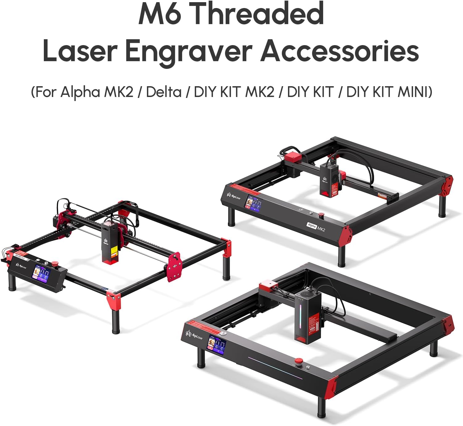 100 mm professional lift: boosts your laser engraving machine for skateboards, hardwood, and multi-layer projectsAerospace-grade aluminum laser engraver riser with M6 anti-slip mats and corrosion-resistant screws for lasting stabilitylaser engraver accessories: fits AlgoLaser Alpha/Delta/DIY KIT and any M6-threaded machineSafety-engineered algolaser raiser with reinforced screw locks and non-slip silicone pads to prevent wobbleReady-to-install algolaser riaser kit: four pre-assembled feet, protective packaging, and essential accessories