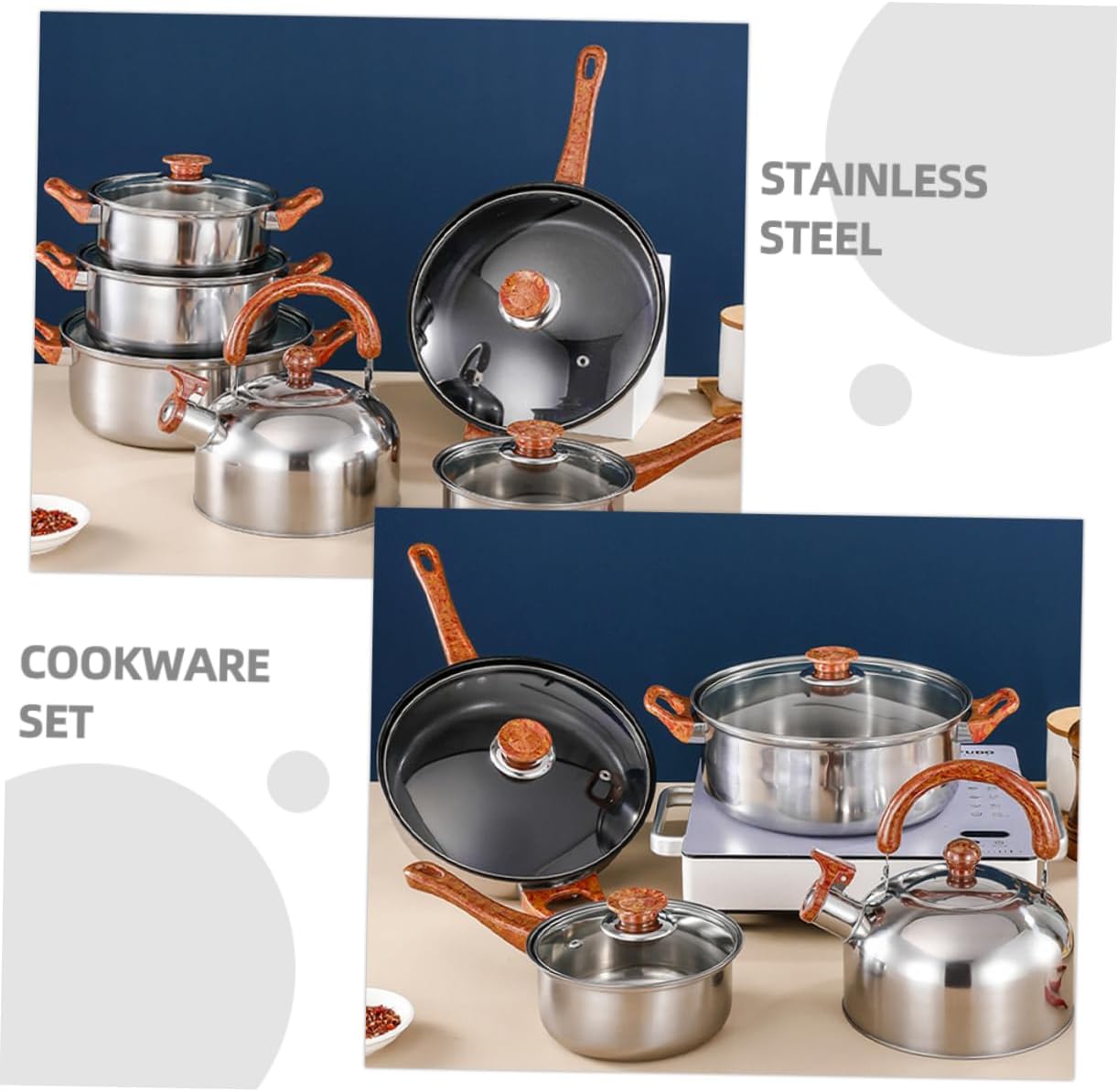 Package Include 6 x pots with lids Features -Size:43.20X20.00X5.80cm/16.98X7.86X2.28in stainless steel cooking utensils -Color:Multi stainless steel pots -Material:stainless steel stainless steel frying pan - They are small and compact, light and portable, easy to carry and convenient to store, suitable for camping kitchen cooking pot. - Made of stainless steel material, these cookwares are not easy to break or deform, can be used for a long time stainless steel pans. - These stainless steel cookware kit is perfect for home kitchen, restaurant, and so on soup pot stainless steel. - The stainless steel cookware kit contains stew pot, frying pan, milk pan, multipurpose to use multifunctional pot. - The frying pan sets are designed with handles, convenient and safe to use oven pan.Goods Informationsteel sauce pan This lightweight cookware is designed can use it in any situation.stainless steel frying pans The small design makes storage easier and the surface is smooth, which is very easy to clean and convenient.stainless frying pan The light weight doesn't cause you any stress