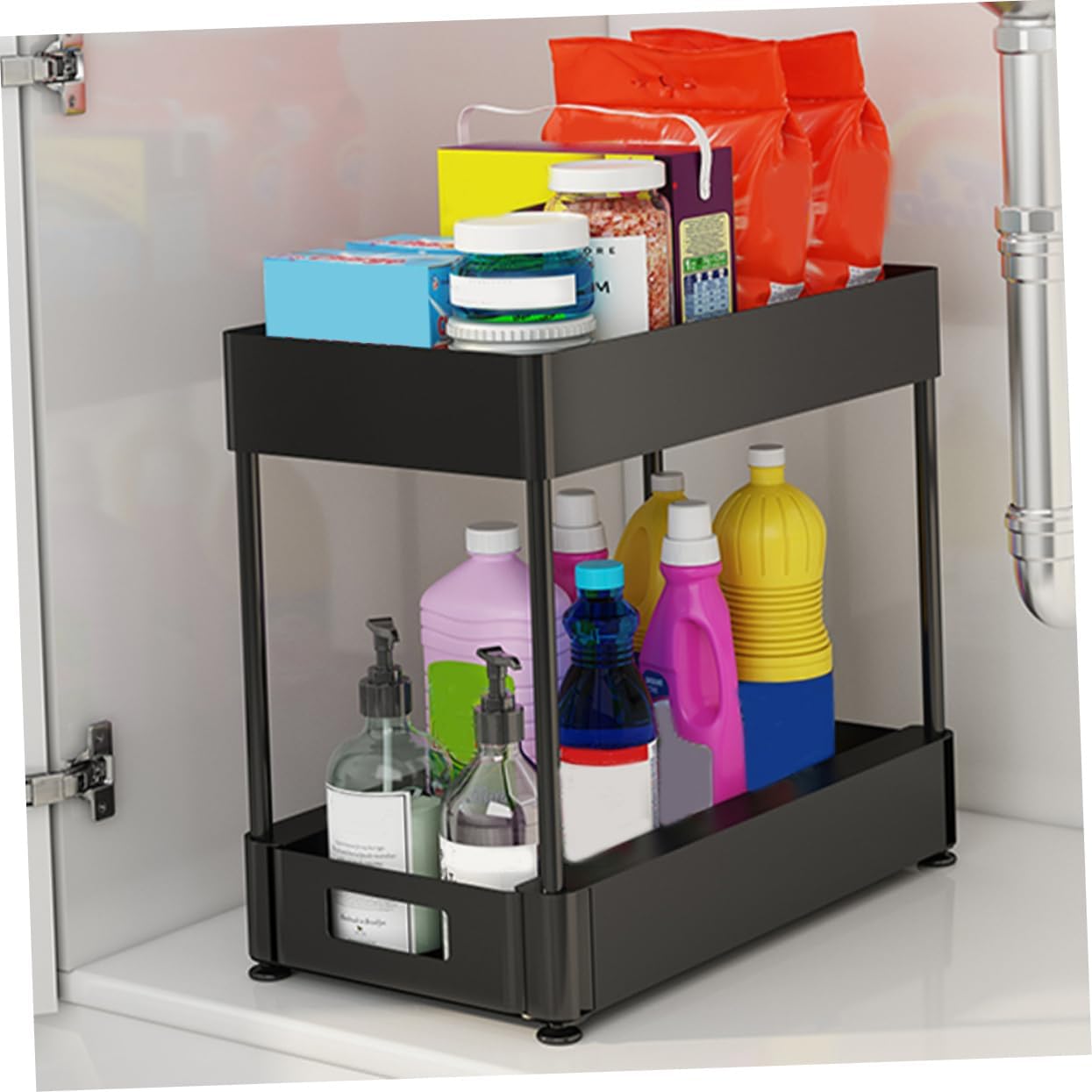 Package List 1 x under cabinet organizer Characteristics -Color:Black under sink organizer and storage -Size:40.00X33.00X22.00cm/15.72X12.97X8.65in under sink organiser -Material:Plastic, carbon steel bathroom storage under sink - Pull out design: you can pull out the bottom layer for easy access pull out shelf organizer. - This under sink organizer is produced by a and has a strong structure, can use it with peace of mind under sink storage for kitchen. - Double layers storage, utilize spare space better, perfect for bathroom and kitchen pull out shelves. - Higher edges can help to prevent your things from falling out of the storage holder under sink rack. - Hollow out bottom design, draining out excess water and ventilated, clean and convenient to use pull out spice organizer.Goods Descriptionpull out cabinet shelf Features carbon steel and plastic material, which has high durability, not easy to deform.under sink pull out storage This under sink organizer is made of , which can withstand use.under sink organizer bathroom This under sink organizer will make home storage easier and smoother.under sink storage for kitchen Fine workmanship, practicality