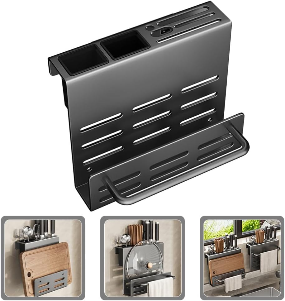 DescriptionThis Chopstick Holder adopts modern style, exquisite and beautiful. It is made of stable material, , not only a chopstick holder, but also a good helper. Draining design, put in your kitchen utensils. The product is suitable for people to use all the time in the kitchen.Features-Color:Grey-Material:Carbon steel-Size:27.50X21.00X15.00cm/10.81X8.25X5.89in-The frame of this tableware rack is made of material, which is rust and scratch resistant. -This is a Wall Chopstick Holder with a simple appearance design, which is also a home decoration.-You can store chopsticks, forks and spoons. Your kitchen will not be messy again.-This Chopstick holder is practical and convenient, and you will have a good experience in using it.-On this shelf, you can keep cooking tools (such as spoons or spatula) within easy reaching and within reach when needed.- Color: Grey.- Size: 27.5X21CM.Package Including1 x tableware rack1 x hanging buckle2 x spoon fork cups1 x glue2 x auxiliary sticker2 x screws2 x anchor bolts
