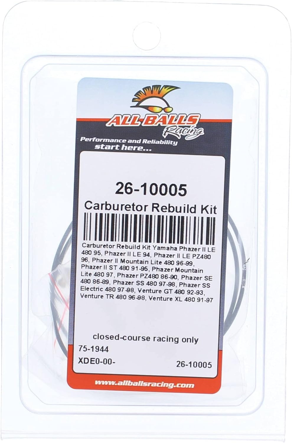 Verify the part fits before purchasingCarb. Rebuild Kit Closed Course Racing Only for YamahaApplications:Yamaha Phazer II LE 1994, Phazer II LE 480 1995, Phazer II LE PZ480 1996, Phazer II Mountain Lite 480 1996 - 1999, Phazer II ST 480 1991 - 1995, Phazer Mountain Lite 480 1997, Phazer PZ480 1986 - 1990, Phazer SE 480 1986 - 1989, Phazer SS 480 1997 - 1998, Phazer SS Electric 480 1997 - 1998, Venture GT 480 1992 - 1993, Venture TR 480 1996 - 1998, Venture XL 480 1991 - 1997.