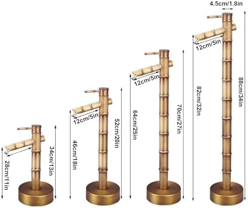 The outdoor all-copper antique water column is a striking addition to any garden. Crafted entirely from brass, it boasts a stable structure, ease of assembly, and a high-quality finish that complements any outdoor setting. Features include a unique design with 3 joints for an artistic and aesthetic appeal, suitable for garden watering, car washing, and pet bathing. Product specifications: Name: Floor Outdoor faucet; Available heights: 13 in, 20 in, 27 in, and 34 in; Base diameter: 6in; Interface size: 1/2 inch (4 points); Material: Brass; Applications: bathtubs, mop pools, spa barrels, outdoor villa gardens; Installation Method: Side water inlet. The package includes: 1 standing faucet and 1 cold and hot water inlet hose.