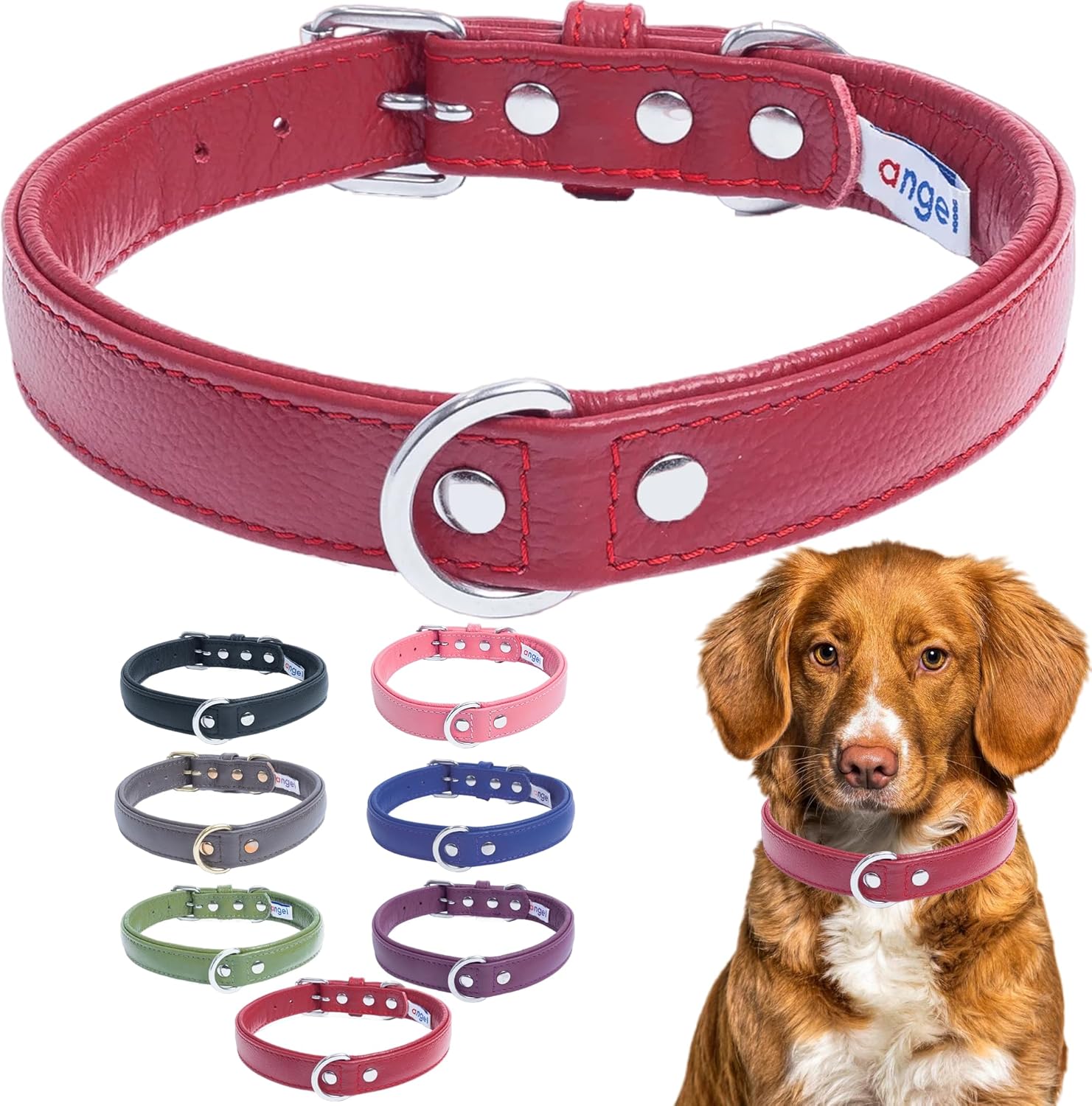 Angel Pet - Genuine Leather Collar for DogOur leather dog collars are made from a super soft genuine padded leather and stainless steel hardware for maximum strength and durability. Our dog collar is an ultimate dog accessory with 100% genuine tooled leather and perfectly handcrafted for the comfort of your favorite pet. Our premium dog collars are not only beautiful but also made to last long. These are naturally tanned using different parts of plants, woods, leaves, fruit and tree bark. This gives the leather a warm, rich and natural tone. As no harsh chemicals are used in making the dog collars, they remain gentle on your dog's skin and the environment. Our dog collars are genuinely handmade with attention to every detail. Leather dog collar is going to get better as time goes on. D-shape ring makes attaching a leash or ID tags easy thus giving additional control and exposure. Most trainers recommend this type of collar for the dogs during training and leisure walks. Features and Benefits:100% premium genuine leather.Hand-made dog collars.Naturally and hand-dyed.Secure, reliable and easily adjustable to size.An easy-to-use closure for the collar. Available in different colours.Size and Measurement:High-quality collars are intended for all dog sizes, from extra small and miniature to medium and large dog breeds. This collar would be ideal for dog's neck size in the range of 16.5"-20": Pit Bulls, Terriers, Retrievers, Boxers, Collies, Beagles or other similar breeds. Before placing an order, please measure your dog's neck circumference with a soft measuring tape to choose the correct size. So, click on the "Add to Cart" button to purchase our premium leather dog collar.