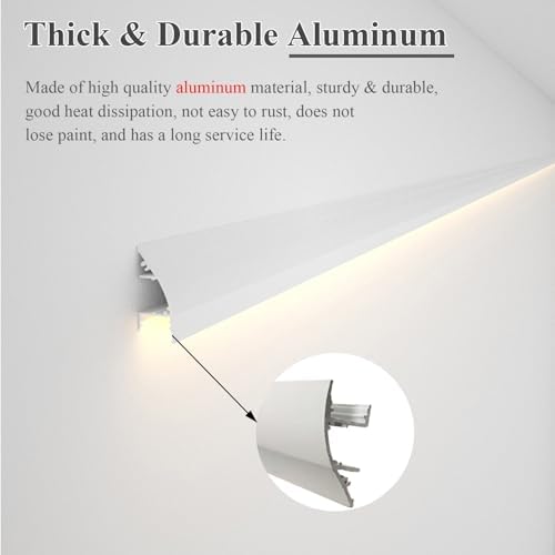 Transform your environment with our LED wall washer channel, expertly designed to distribute light evenly through a durable PC cover, creating a warm and inviting atmosphere. This lighting fixture goes beyond mere illumination; it enhances the aesthetic appeal of any room, seamlessly marrying functionality with contemporary design. **Specifications:** - **Material:** Sturdy Aluminum Alloy - **Color Options:** Available in White and Black - **Compatible LED Width:** Less than 8 mm (1/4") - **Length:** 1 m/3.3 ft (Customizable) **Key Features:** - Crafted from high-quality aluminum for exceptional durability. - Designed for easy mounting, doubling as stylish crown molding. - Functions as both uplight and downlight, offering versatile lighting options. - Ideal for creating indirect lighting in living rooms, bedrooms, or professional spaces. - Customizable length allows you to tailor it to your specific lighting needs. - Modern design with sleek, illuminated recesses adds an eye-catching element to any decor. - Perfect for a variety of scenarios, enhancing both residential and commercial settings. **Package Contents:** - 1 x Crown Molding Lighting (LED lights not included) **Important Notes:** - For corner connectors, please contact us for assistance. - Ensure the use of LED strips not exceeding 8 mm in width, as they are not included. - Color variations may occur due to different screen displays. - Slight size discrepancies may arise from manual measurements. Elevate your space today with our LED wall washer channel, a perfect blend of style and practicality that meets all your lighting requirements.