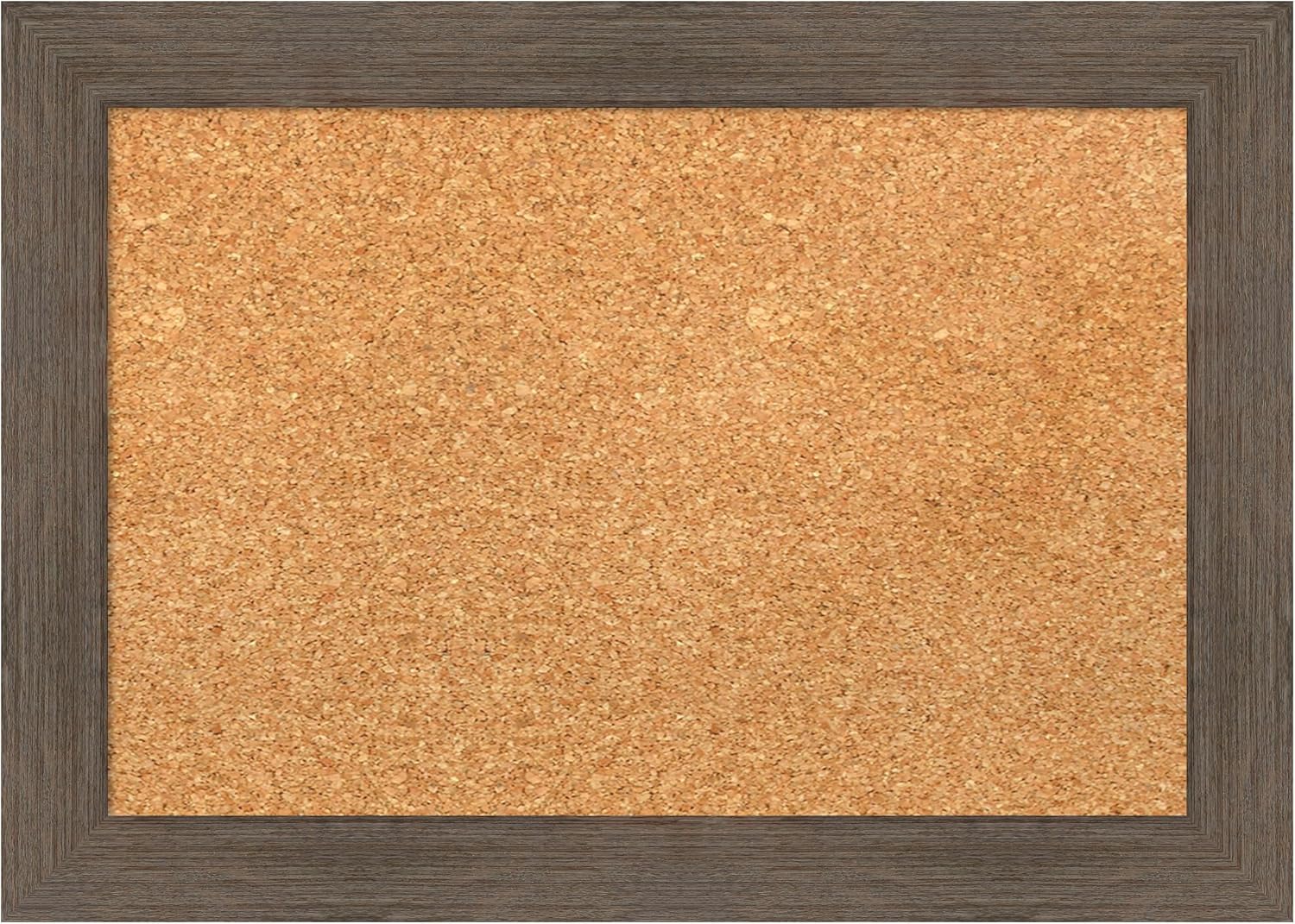 PRODUCT: Framed Cork Board; FRAME: Owl Brown Narrow; FRAME FINISH: Distressed; FRAME COLOR: Brown; CORK COLOR: Natural; OUTER SIZE: 32 in. x 24 in. The Owl Brown Narrow frame is a natural wood frame with a slight scoop and woodgrain variation showing through. The finish is warm light brown with grey, cream, and mauve tones. A beautifully framed corkboard turns everyday notes and messages into an ever-evolving work of art. This 100% real wood corkboard is a great way to add function to your home without sacrificing style. Organize to-dos, notes, calendars, coupons, or artwork in your kitchen, entryway, mudroom, or laundry room. Individually made using traditional custom framing techniques, it has the quality you would expect from your local frame shop. Because of our attention to detail and focus on artistry, architects, interior designers, and homeowners alike choose this corkboard to create beautiful living spaces.