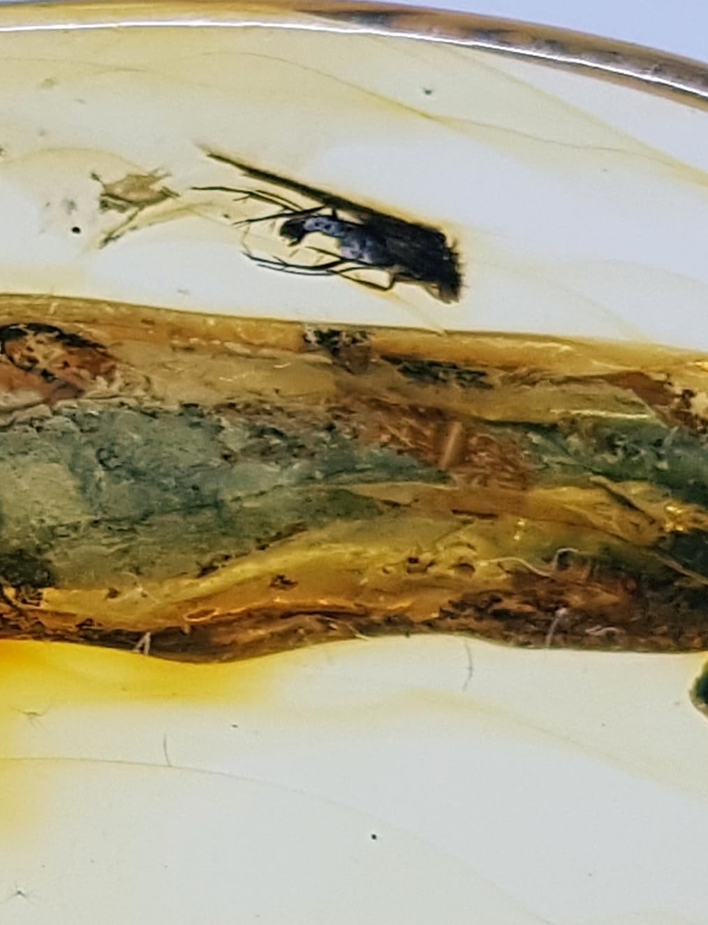 One small piece of Baltic Amber with Insect Inclusion, these are genuine fossils and should not be confused with larger replicas. Baltic Amber is considered to be a Gemstone. When polished, Baltic Amber glows with a translucent warmth and golden honey-like color. Baltic Amber is the hardened sap of certain types of ancient trees that have become fossilized over millennia. These intriguing Baltic Amber gems formed more than 45 million years ago. The insects inside are approximately the same age, having been captured while the amber was still a sticky tree sap.Baltic Amber is Fossilized Resin, originally produced by pine trees which grew the Baltic Sea. The chemical structure of amber makes it dense, hard, resistant to external factors and makes the preservation of plant and animal inclusions possible.