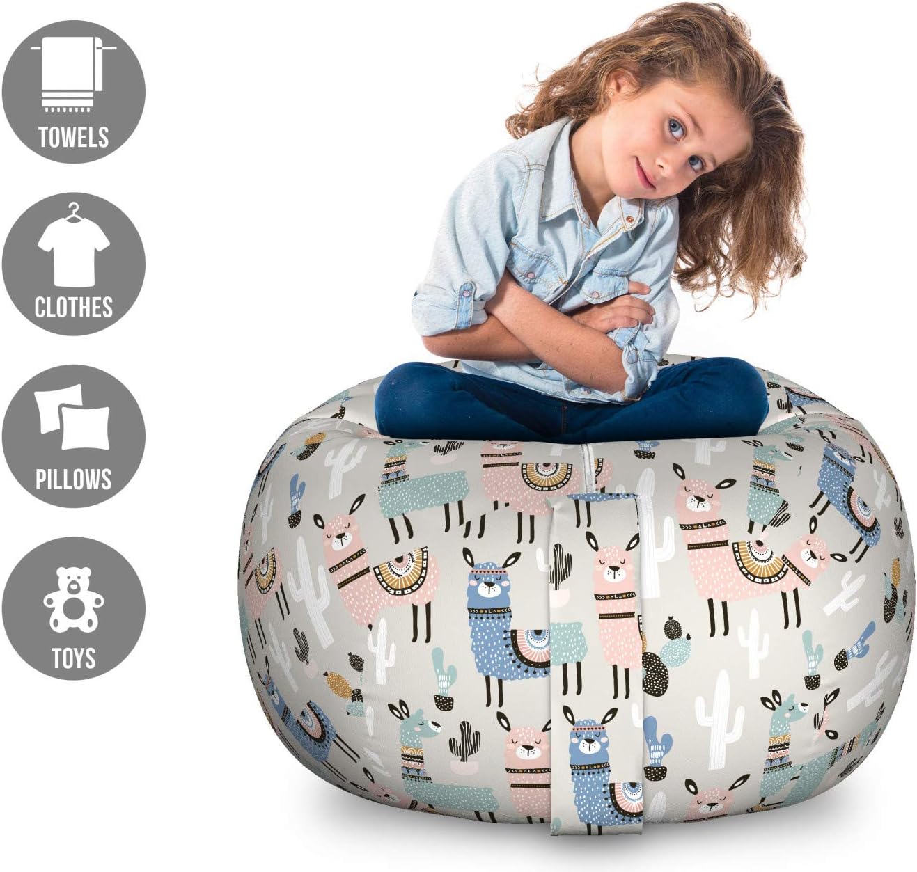 Large Size - You can stock over 90 plush toys in bean bag. Measurements: 30" W X 23" H when full.Made from - High-quality, soft %100 polyester fabric. Machine washable and durable. Stuff and sit.Features - Zipper closure. Easy to carry with large sturdy handle. Effective space saver. Practical.High capacity - Can store your stuffed toys blankets pillows nets hammocks seasonal clothes & more.Printed - With state of the art digital printing technology. Only case, insert is not included.Fill and have fun with our space saver bean bag for storage. It's a soft and cuddly way to store all your stuffed animals and soft toys; you can also stock extra pillows, blankets, sheets, nets, hammocks, towels, comforters, sleeping bags, or even seasonal clothes. It'll be your helper with its high capacity. It's also decorative; after you replace all the mess you can sit on and enjoy yourself. A perfect solution to open up some room to spare. It's suitable for anyone with thousands of different patterns. Can be a birthday or Christmas present for your loved ones. 2 different size options available: small and large. Easy to care for and easy to clean. Machine washable on cold delicate cycle, tumble dry on low. Read, snuggle, lounge, flop, and play on besides organizing stuff. Decorate your kids' room, playroom, or family room with this useful storage bean bag. The bag itself is lightweight and portable when empty. Has a large handle so you can easily carry it around, put it in your room, garden, or any place you want it to be. Due to manual measurement, please kindly allow a 1-2 cm discrepancy. The digital images we display have the most accurate color possible but due to differences in pc monitors, we can't be responsible for variations in color between the actual product and your screen. Only case, insert is not included.