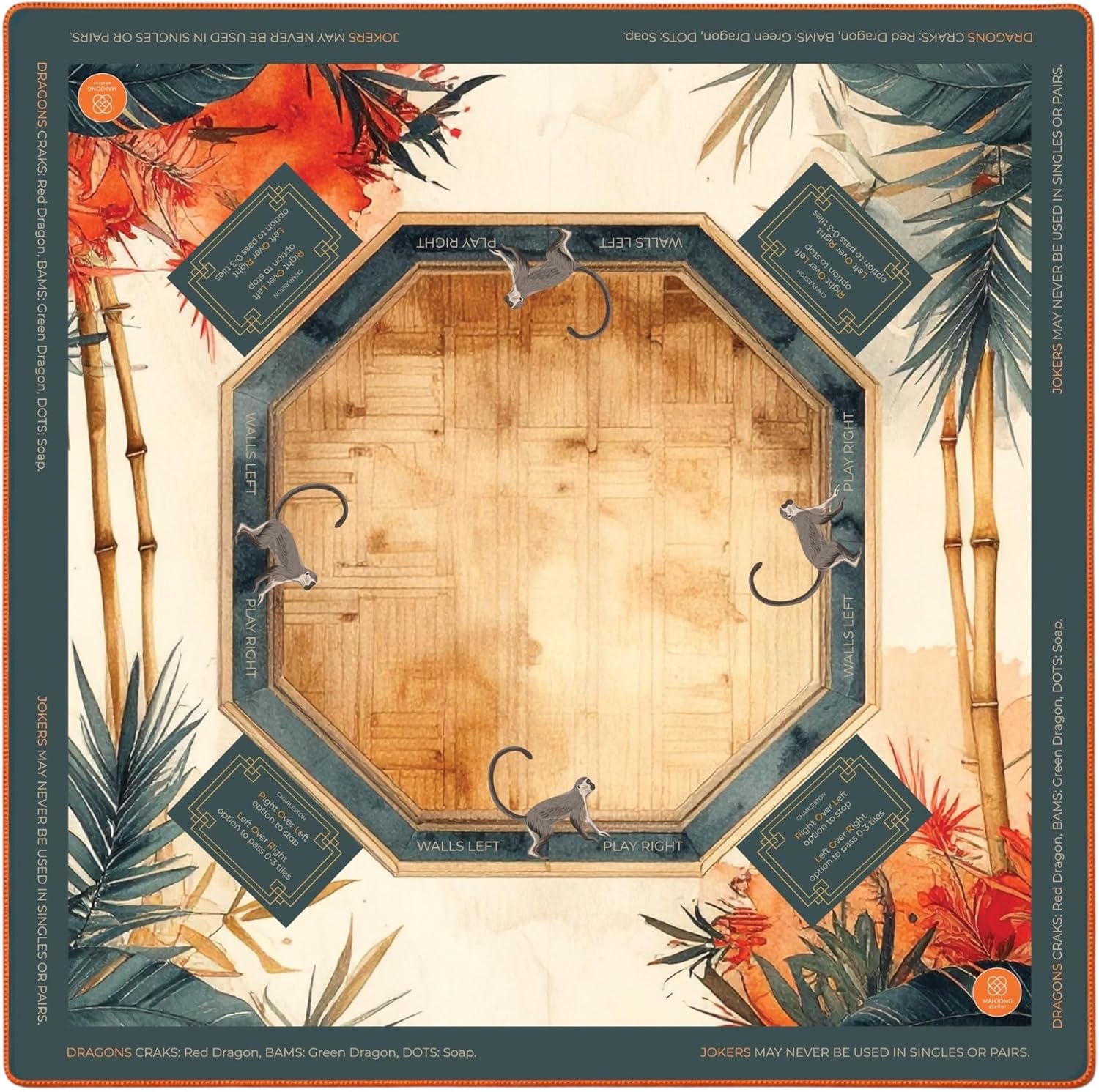 Bring friends and family together with the Bloom Floral Edition American Mahjong Mat designed for comfortable Mahjong game nights. Measuring 31.5 x 31.5 inches, the spacious square playing surface provides room to build walls, arrange racks, and manage tiles comfortably during every round of American Mah Jongg. The padded surface helps reduce tile noise while playing, creating a quieter and more relaxed atmosphere whether you're hosting Mahjong night at home or enjoying a game with friends. The smooth top layer allows tiles to glide comfortably while maintaining control during play. A non slip rubber backing helps keep the mat securely in place on dining tables and game tables while helping protect surfaces from scratches and wear. Lightweight and rollable, the Bloom Mahjong Mat includes a durable canvas carrying bag for easy storage and travel. Its floral design adds charm and personality to Mahjong nights, family gatherings, and casual games with friends.