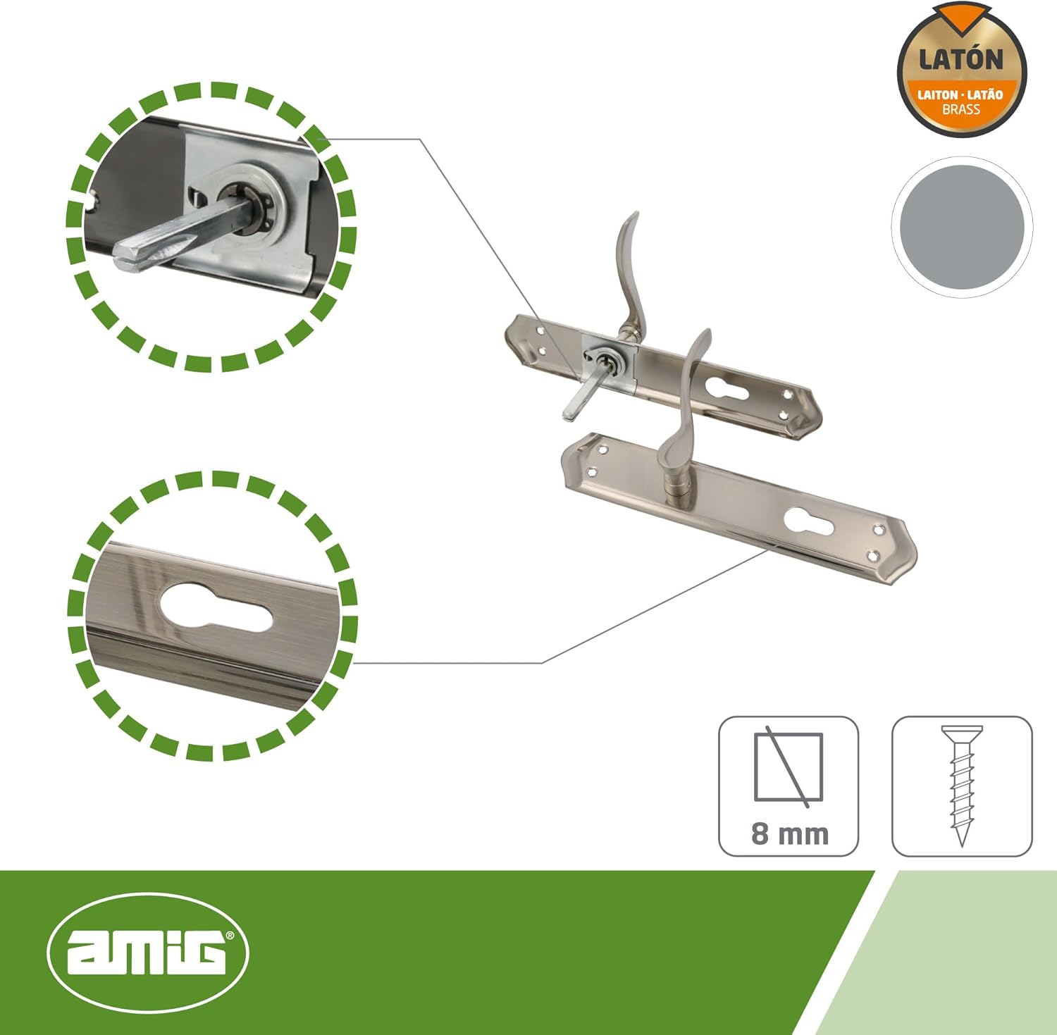 | Item Type Name | Amig - Silver plated brass door handle set in matt chrome finish with keyhole, ideal for interior and exterior doors with comfortable hand crank, elegant and timeless - 256 x 48 mm |