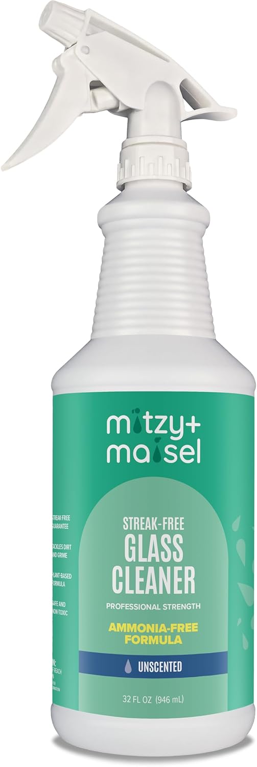 Mitzy+Maisel ready-to-use Ammonia Free Glass Cleaner is a non-streaking, moderate foaming, spray product for interior surfaces. Formulated to remove fingerprints, dust, water spots, light oils, and residue.Applications: Windows Mirrors and other mirrored surfaces Ceramic Porcelain Stainless Steel PlasticsInstructions:1. Spray the glass cleaner into a clean cloth or onto the surface.2. Wipe the surface with a clean cloth or paper towel until clean and dry.3. If using a squeegee, apply cleaner, scrub to loosen soil, then squeegeeNOTE: When the surface temperatures exceed 75 Fahrenheit, the solution evaporates too quickly, resulting in streaks. This holds true for any interior glass cleaner. For exterior surfaces, results will be best out of direct sun and at a moderate temperature.