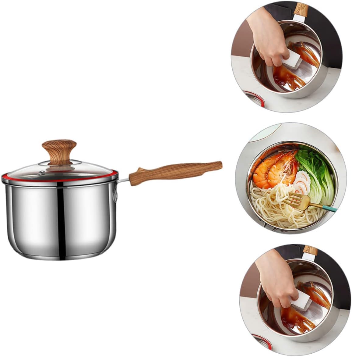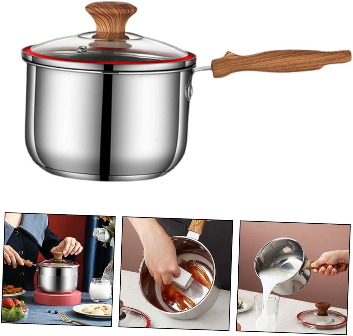 Package Include 1 x Pot Characteristics - Size: About 32.00X16.00X10.60cm/12.58X6.29X4.17in small stainless steel pot. - Material: Stainless Steel pots stainless steel. - Color: Silver Food Cooking Pot. - Multi-functional use, it can be used as , mixing salad pot and soup pot soup pot. - Manufactured with , and enough to use kitchen pot. - The bottom is flat, heat conduction is fast, and the heat is even Food Pot. - With the long wooden handle, you can use the saucepan safely and conveniently pot food. - The non-stick, compact design provides you with great convenience, light and strong small soup pot.Goods Informationboiling pot The long handle will protect your hands form high temperature.soup pot Made of good material, for use.cooking pots The thickened pot is suitable for cooking soup, complementary food, heating milk and etc