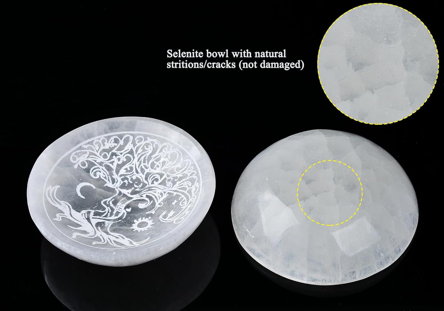 Natural Selenite Bowl for Charging Selenite Dish Tree of Life Engraved Crystal Bowl Selenite Plate 5.5"