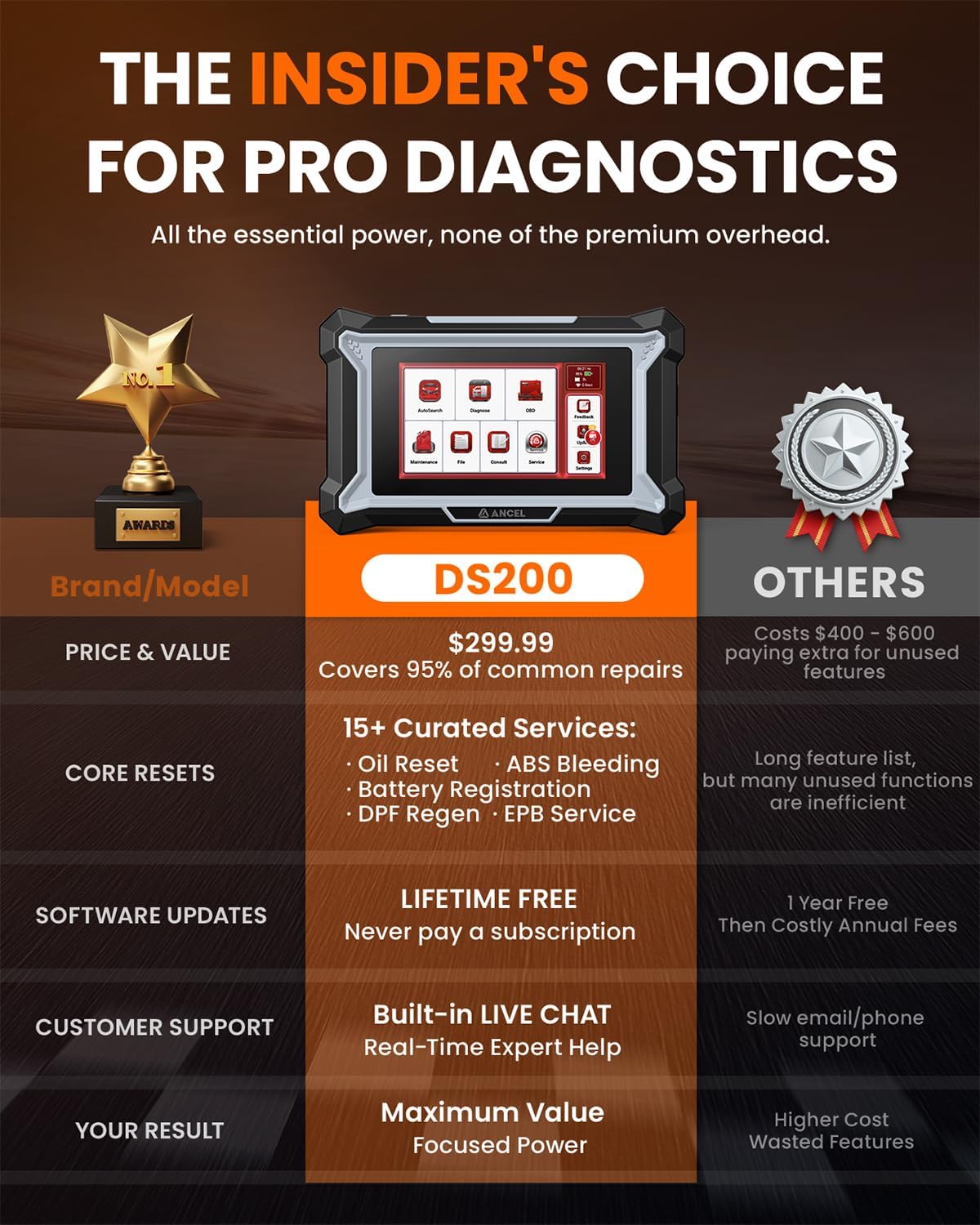 | Included Components | 1 * ANCEL Protective case, 1 * Charging cable, 1 * DS200 Full system scanner, 1 * Manual |