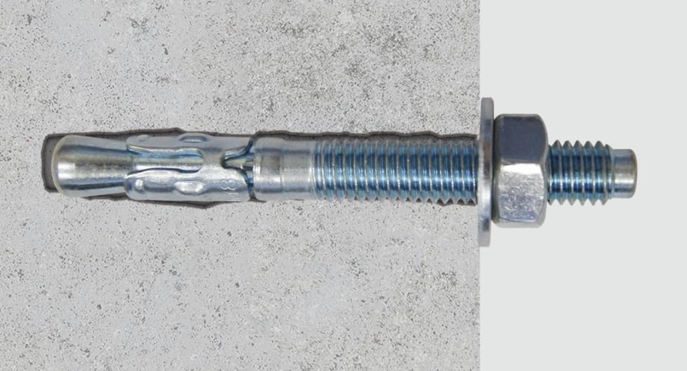 Manufactured from heavy-duty galvanized steel, the bolt anchors offer a secure attachment to concrete, cement and stone. Its torque controlled expansion system ensures stability even under load. They include nut and washer, and are ideal for metal structures, railings, supports or steel and wood substructures.