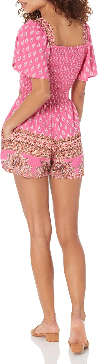 | Style | Angie Women's V-neck Ruffle Sleeve Romper With Center Cutout |