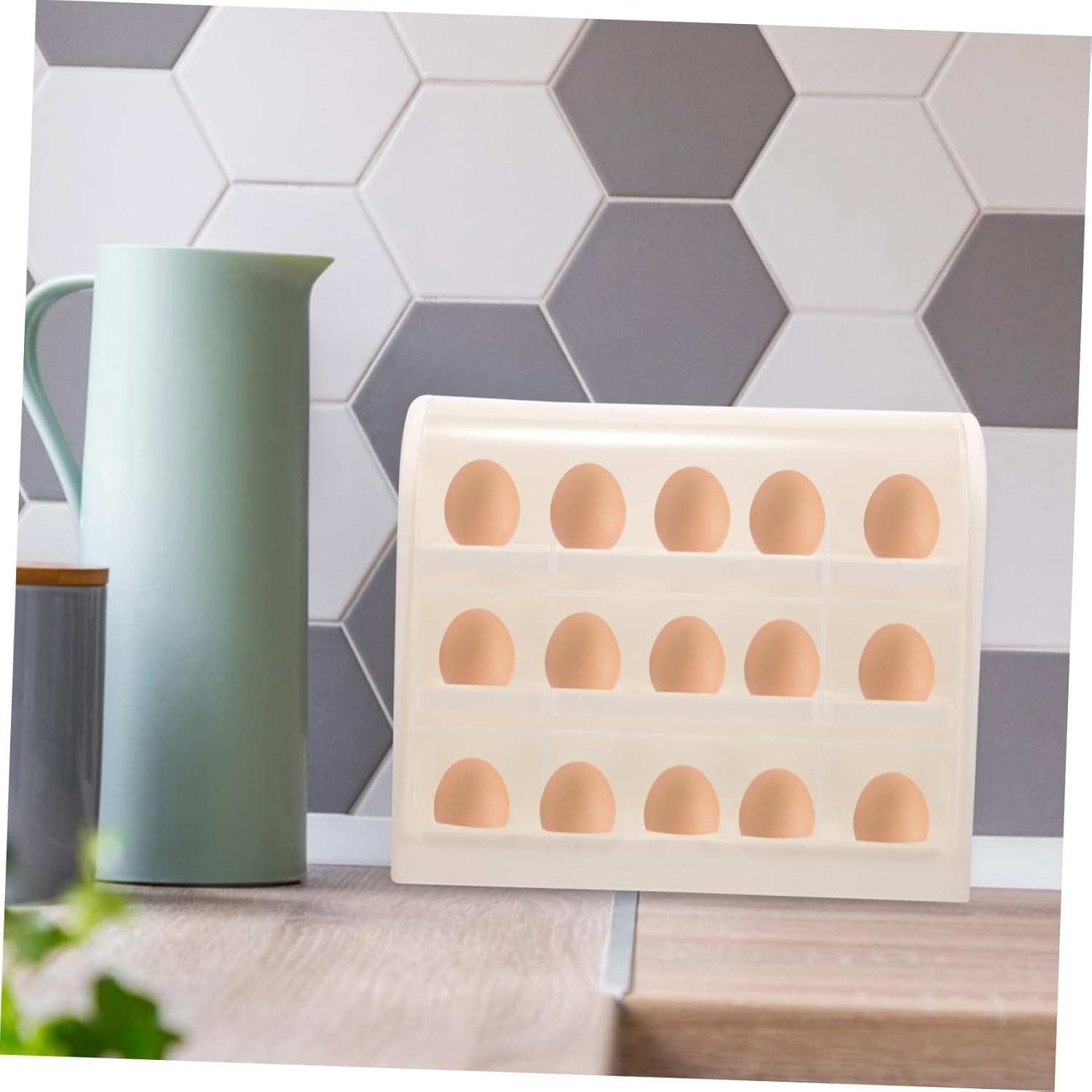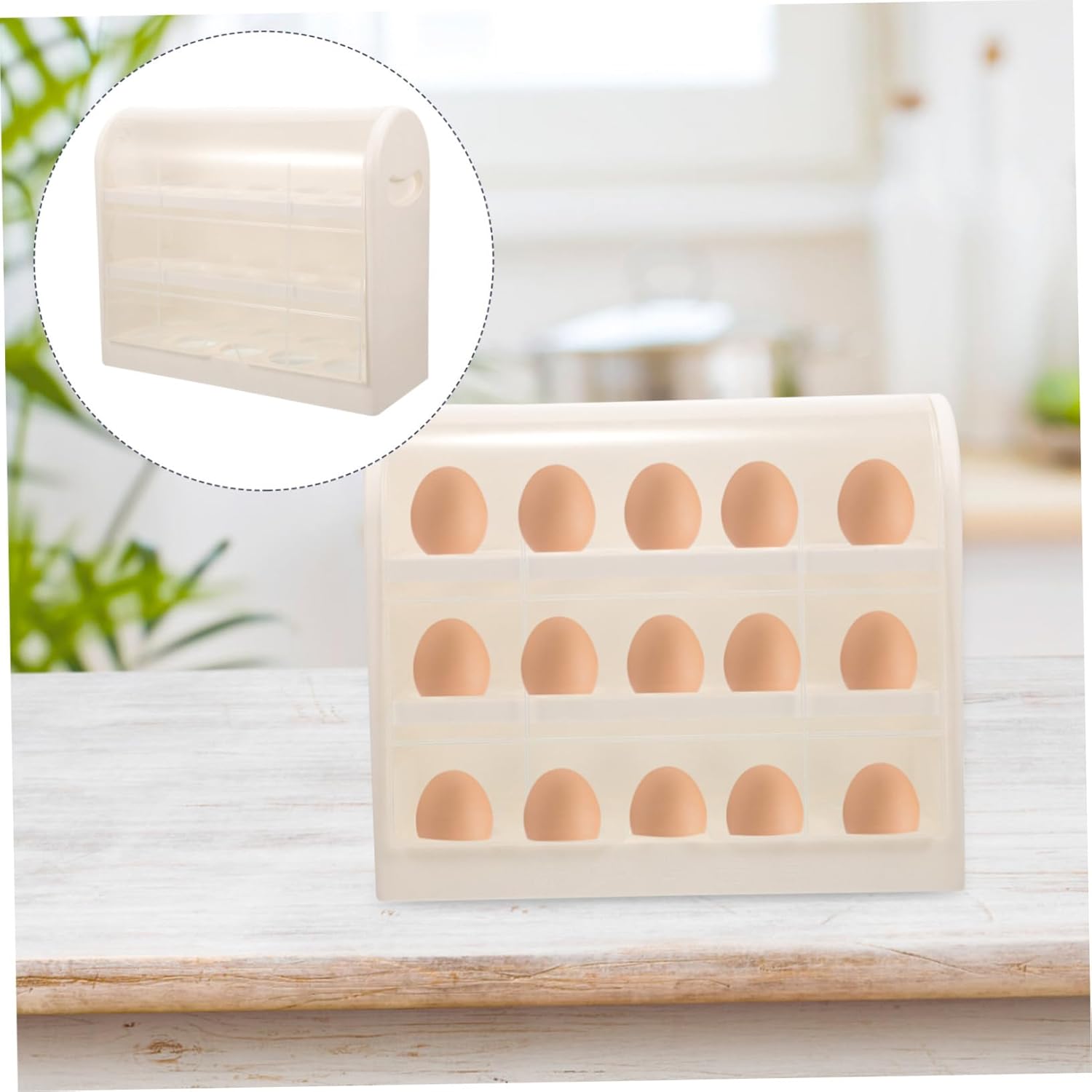 Package List 1 x egg tray Features -Material:Plastic multi-layer egg holder -Color:Coffee egg tray -Size:25.50X21.50X10.00cm/10.02X8.45X3 flipped egg tray. -This egg carton has a flipped lid design for easy access eggs while cooking and prevents from entering refrigerator egg rack. -Simple and beautiful, this multi-layer egg box offers an easy keep your kitchen organized egg container. -Wide range of uses, can be used for the preservation and storage of eggs, eggs, or preserved eggs plastic egg container. -This is a premium flipped Egg storage box that can be used on the kitchen cabinet or in the refrigerator egg organizer. -Place each egg independently, it should not be broken, and the eggs can be stored neatly multi-tier egg tray.Goods Informationdeviled egg holder This is a multi-functional Egg Tray, made of high grade plastic material, durable and can be used for a long time.household egg holder The independent grooved egg rack can eggs from colliding, is easy to move, and can be put into the refrigerator for refrigeration, which is convenient to use.egg holder It can be used in many scenarios, such as home kitchens, restaurants, or to keep fresh in the refrigerator