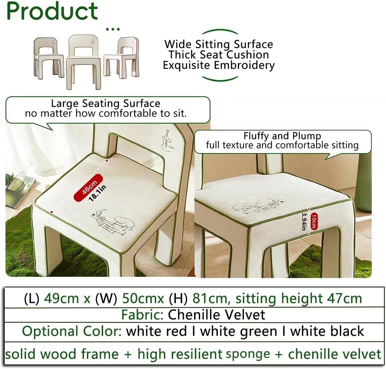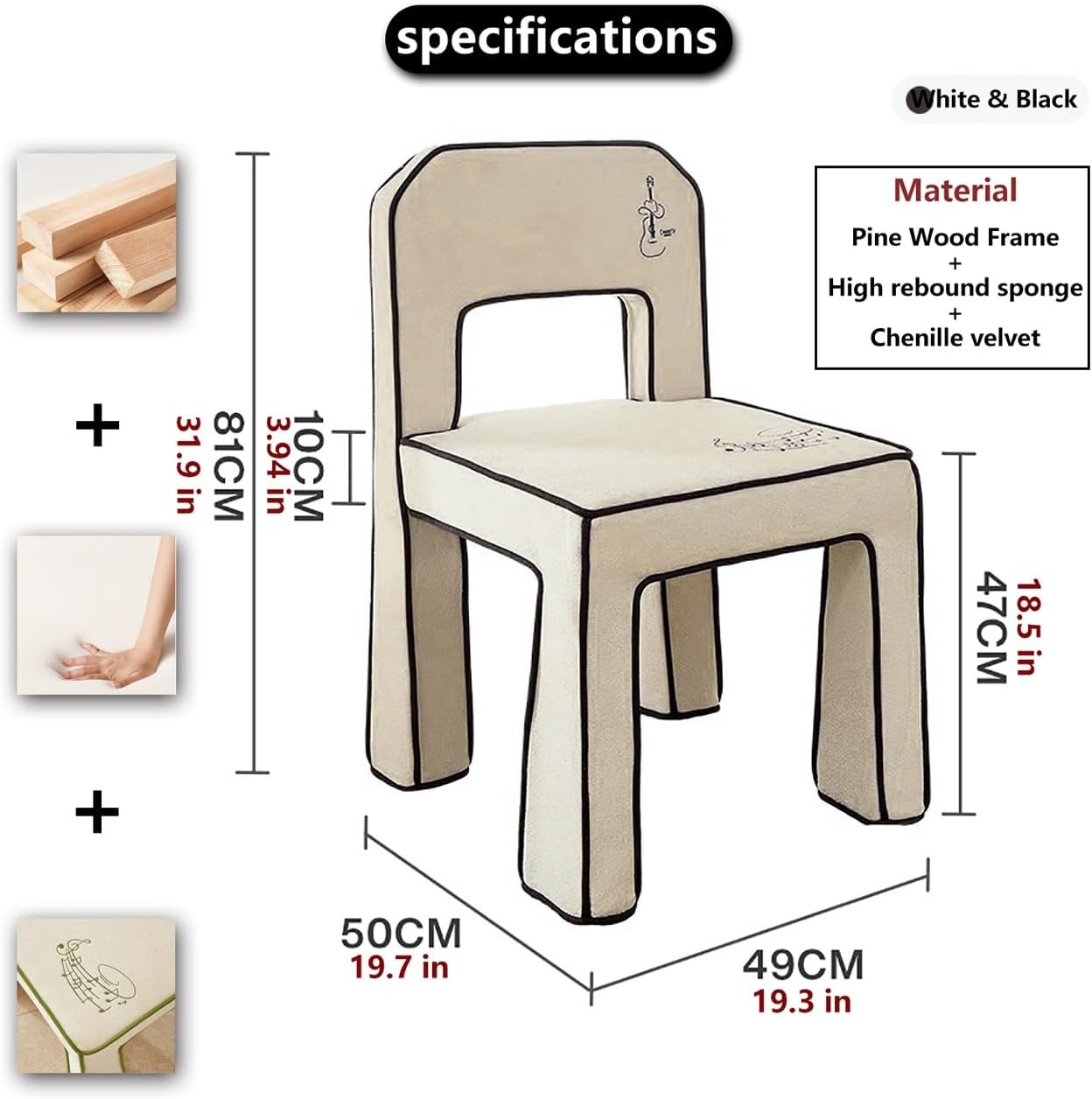 Indulge in ultimate relaxation with our Chenille Anime Chair, a well-integrated choice of premium comfort and authentic anime artistry. Designed for true fans, this chair offers a fixed-angle, no-wheel design for stability and durability, making it ideal for gaming, reading, or simply lounging in style.Product Specifications:- Material: High-grade chenille fabric + Hardwood frame+ High elastic sponge- Dimensions: 49cm L × 50cm W × 81cm H (19.3" × 19.7" × 31.9")- Seat Wide: 46cm wide(18.1")- Seat Height: 18.5" from floor- Weight Capacity: 350 lbs (160 kg)- Chair Weight: 22 lbs (10 kg)What’s in the Box?- 1 x Chenille Anime ChairImportant Notes:- Color Variations: Due to monitor and lighting, colors may slightly differ from images.- Size Tolerance: Handcrafted items may have minor variations (±0.5").- Cleaning: Spot clean and do not bleach.Why This Chair Stands Out?- No Weak Points – Fixed design means no loose levers or wobbly wheels.- Built for Longevity – Sturdy materials that stay plush and vibrant.Great for: Anime fans, gamers, collectors, and anyone who values comfort + fandom in one seat!