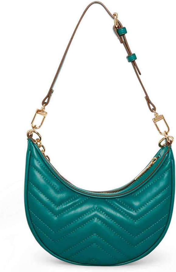 Crescent bags continue to be the moment. Now with chevron quilt detailing and swag chain for that extra wow factor. Wear it as a true shoulder bag or use the convertible strap and wear it as a crossbody. Wear it this Fall season with knee high boots and a long down coat.
