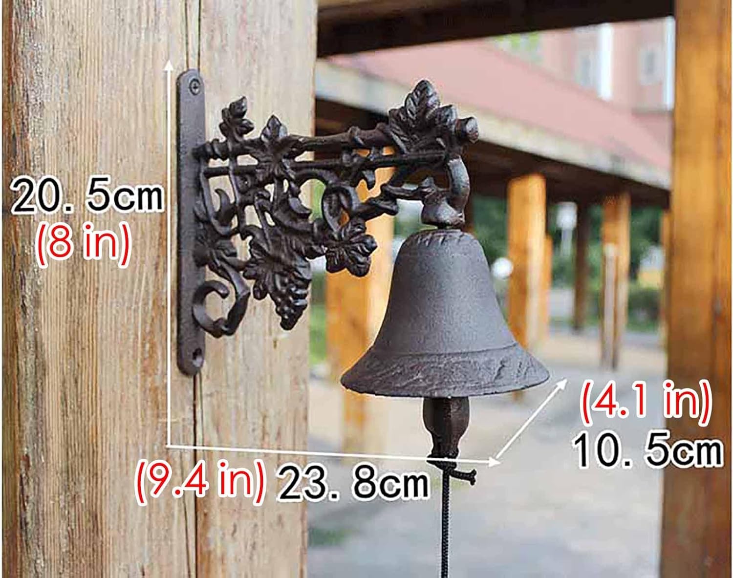 Pulling that rope and knocking metal jingle bell gently, you will hear crisp, relaxing and pleasant sound. Features: Cast iron construction is easy to wipe or clean and be used for a long time, allows to hit louder and more comfortable sound. Metal bell decorated with cute parrot and bracket with patterns, adding natural, lively and vintage feeling to your space. Using it as door bell, dinner bell or decorative bell for house, garden, farmhouse, school, ship, indoor outdoor or daily use. Wall mounted hanging bell with holes is convenient and easy to install, making it hang on any walls stably and firmly. A retro & eye-catching ornament bell or a charming way to welcome friends to your home or as an unique housewarming. Specification: - Material: Cast lron - Size: 23.8×10.5×20.5cm (9.4×4.1×8 inch) - Bell Diameter: 10.5cm (4.1 inch) - Packing Include: 1× Cast iron door bell - Care Instructions: Just wipe Package Includes: 1 x Cast Iron Door Bell Mounting Screws