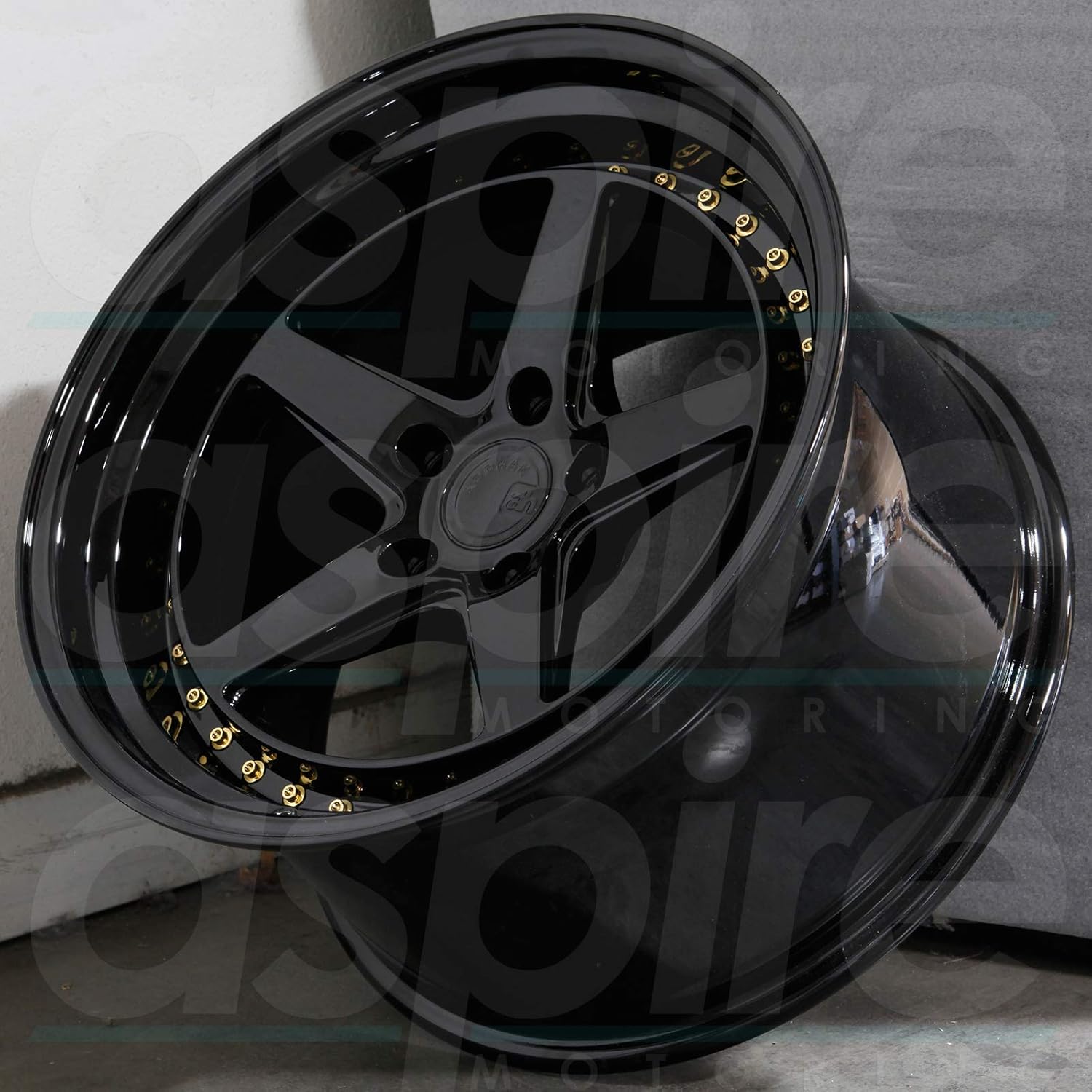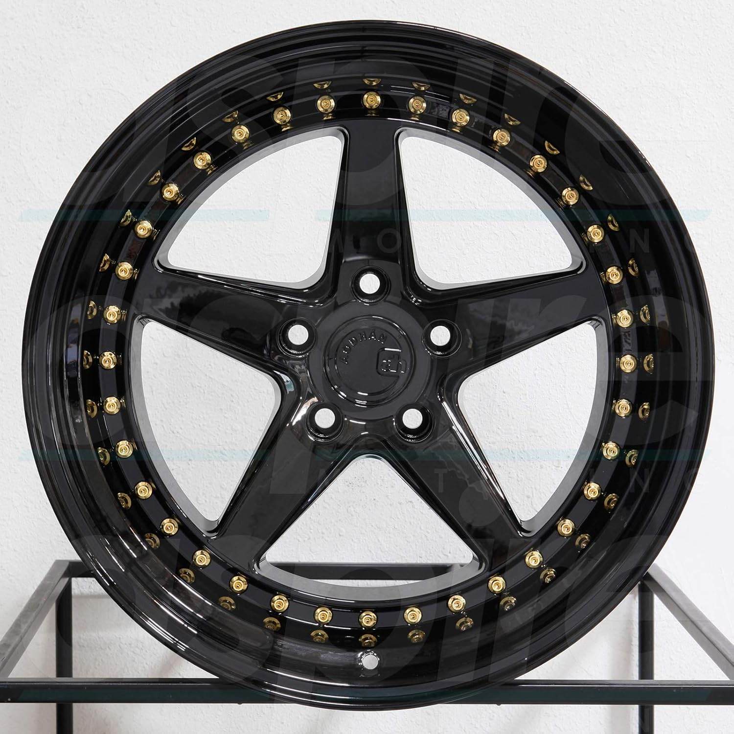 "Aodhan DS-05 Custom Wheel - 19x11, 22 Offset, 5x114.3 Bolt Pattern, 73.1mm Hub - Gloss Black with Gold Rivets Rim"